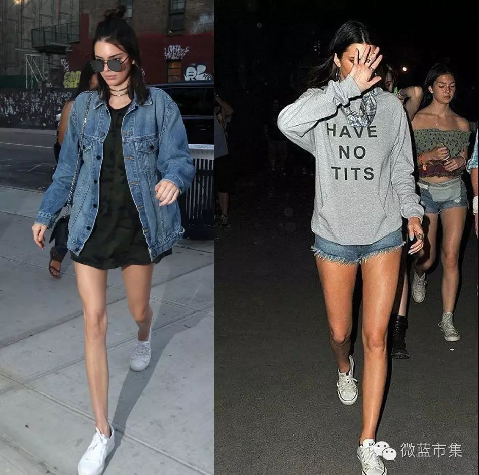曾经流行过的长版T-Shirt在卡戴珊一家可是抢手货,宽松的长tee盖住臀部,底下穿一条小热裤或打底裤,就能轻松完成出街Look,还能遮肉显瘦。