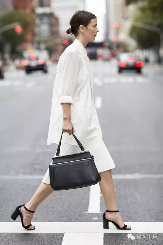 从脖子到脚看起来包的严严实实,也可以穿出飘逸、随性和慵懒,你只需解开部分衬衫的扣子(下摆、领口和袖口)和一缕微凉的秋风。直筒版型的衬衫裙在显瘦效果、对遮盖大腿的部分都具有超高本领。如果觉得衣服颜色太过单调,可用颜色较鲜艳的手袋来增添一点玩味。