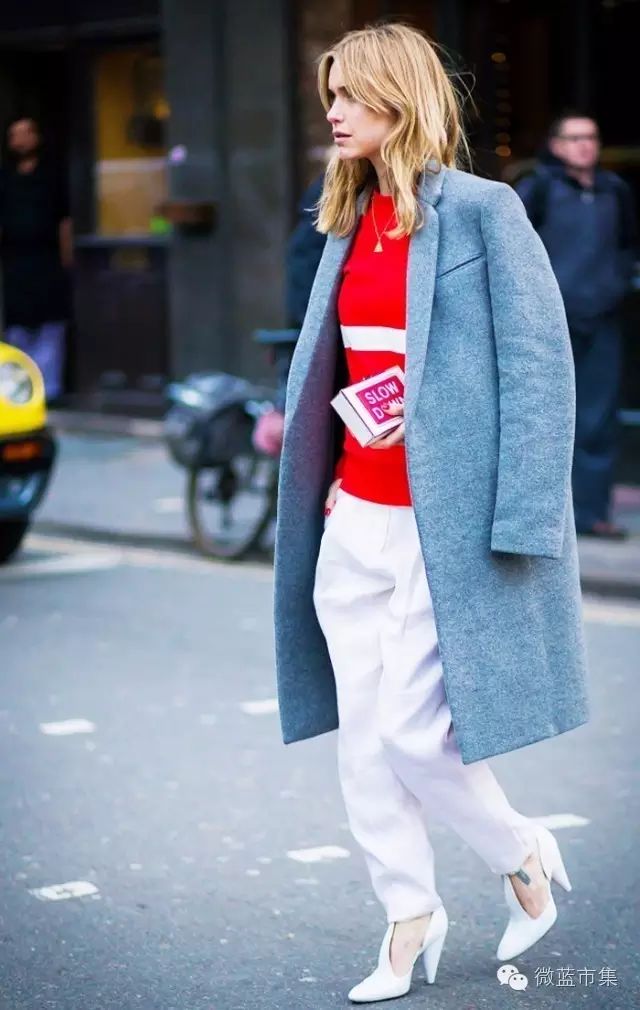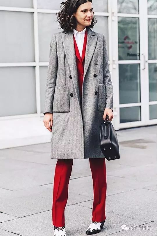 灰色很经典,几乎跟任何颜色都可以搭配,在秋日里,尤其是没有阳光的阴天,特别需要一抹红色来打开灰色的小心情~