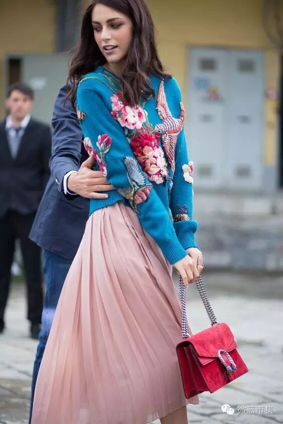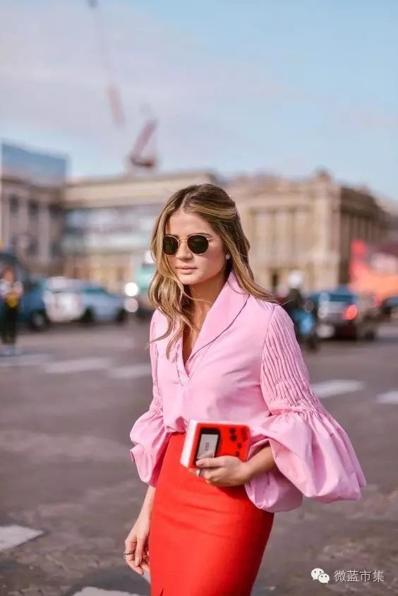 Thassia Naves这一套粉色搭配我也挺喜欢的,今年流行在袖子上大做文章,虽说夸张了一点,如果是个创意工作者,这样去上班还是蛮美丽的。