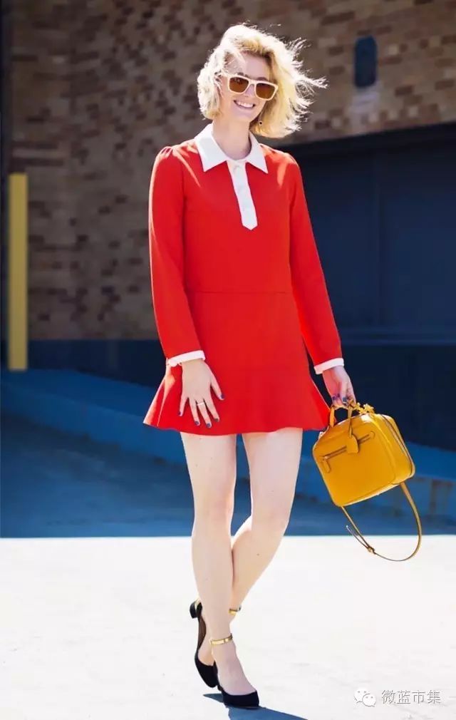 红色的明艳,热情都很容易打动人,穿得好就是活力热情,自带焦点。