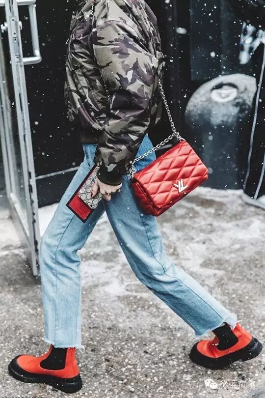 其实最简单的莫过于全身无彩色系+一抹红色的包包或者鞋子,