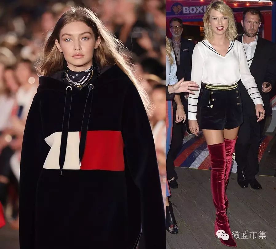 蓝谷印象很深刻的,莫过于上个月TommyT台上,超模GIGI穿的天鹅绒卫衣,以及秀场头排的小清新的酒红色天鹅绒过膝长靴(Stuart Weitzman “Alllegs”)