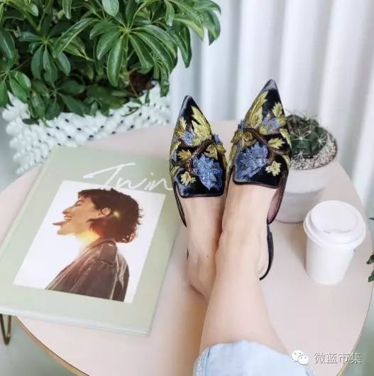 柔软的天鹅绒表面,每款鞋都点缀上精致的刺绣,和3D 的花瓣和树叶丝线,每双耗时两天细致工艺来打造。