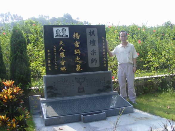 杨老儿子杨健明先生,在棋坛宗师杨官璘墓碑前留影