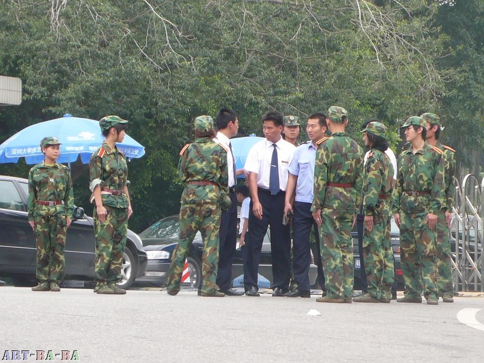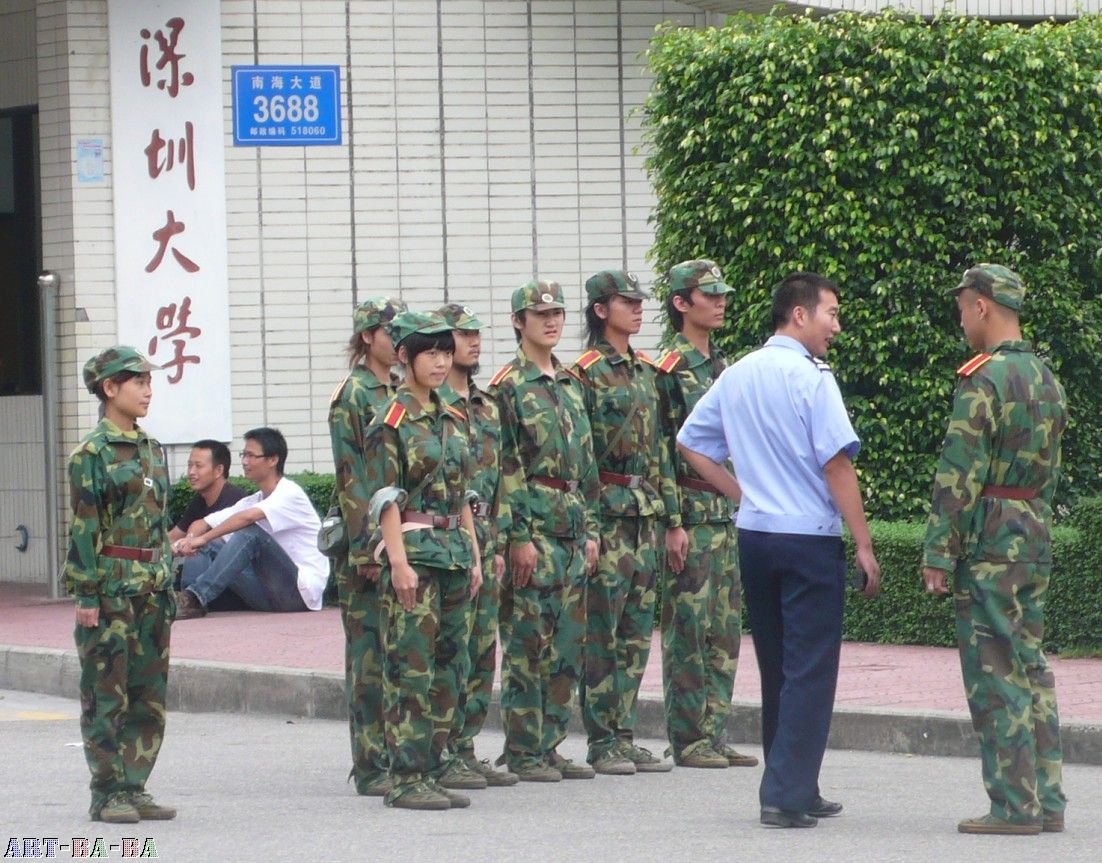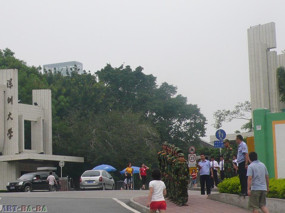 今天下午某美术学院油画系学生何齐在深圳大学门口展开了他的行为艺术表演“教训”,此方案得到F518创库杜某某的大力支持,杜某某以教官的身份参加。