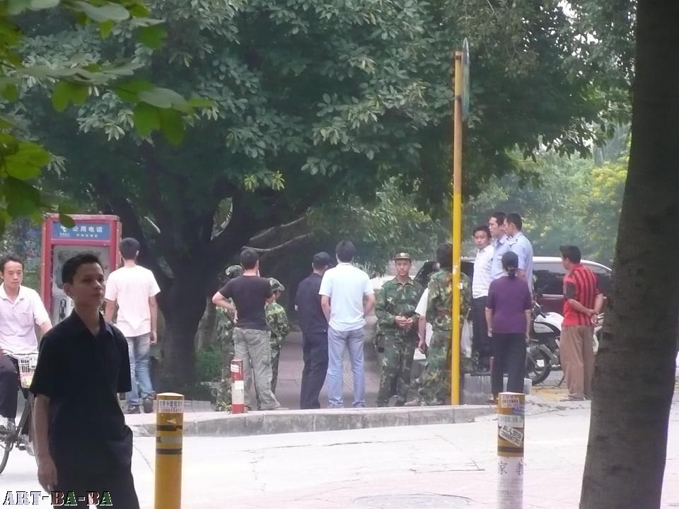行为进行中被深大校内保安驱赶并招来深警,警察带走了所以的参与表演者,连同两名无辜的观众,现在他们还下落不明。协助摄影者陈洲,李宗泽等狼狈逃窜........