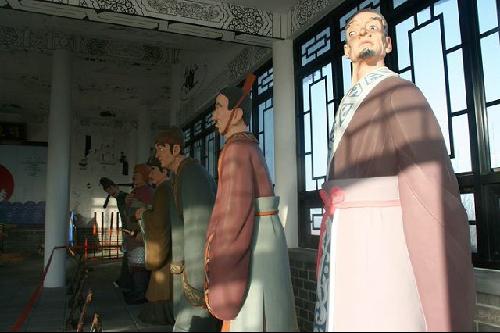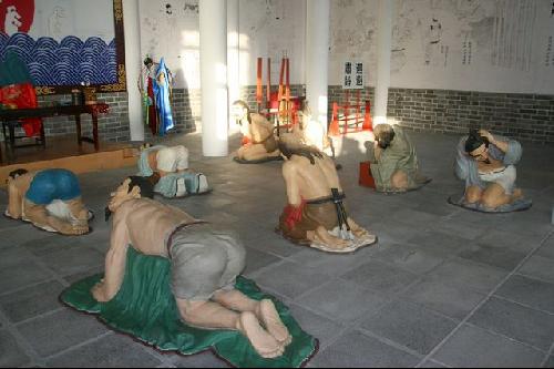 没进馆之前,我第一反应想起来了严嵩、秦桧和和珅;而馆内则竖立着十座写有名姓的“奸臣”,果不其然地包括前面三位。其他的不怎么熟悉,但把汪精卫列进去的确也把我雷了一下。在大殿前面,一片丑态百现的“奸臣”跪在地上,等着台上的判官大人的惊堂木(游客可以自己穿上袍子扮演,但要收费)。而在墙上和天顶上,也画着这些奸臣的“事迹”……总之,很雷人~