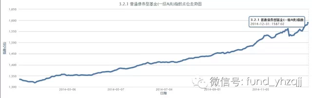 根据中国银河证券基金研究中心的统计,截止2014年12月31日,参与平均计算的普通债券型基金(一级A类)数量67只,2014年平均净值增长率17.92%。