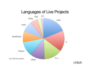 该调查发现,当今最活跃的编程语言是C/C++,跟随其后的是Java,Python,JavaScript等编程语言,如下图所示: