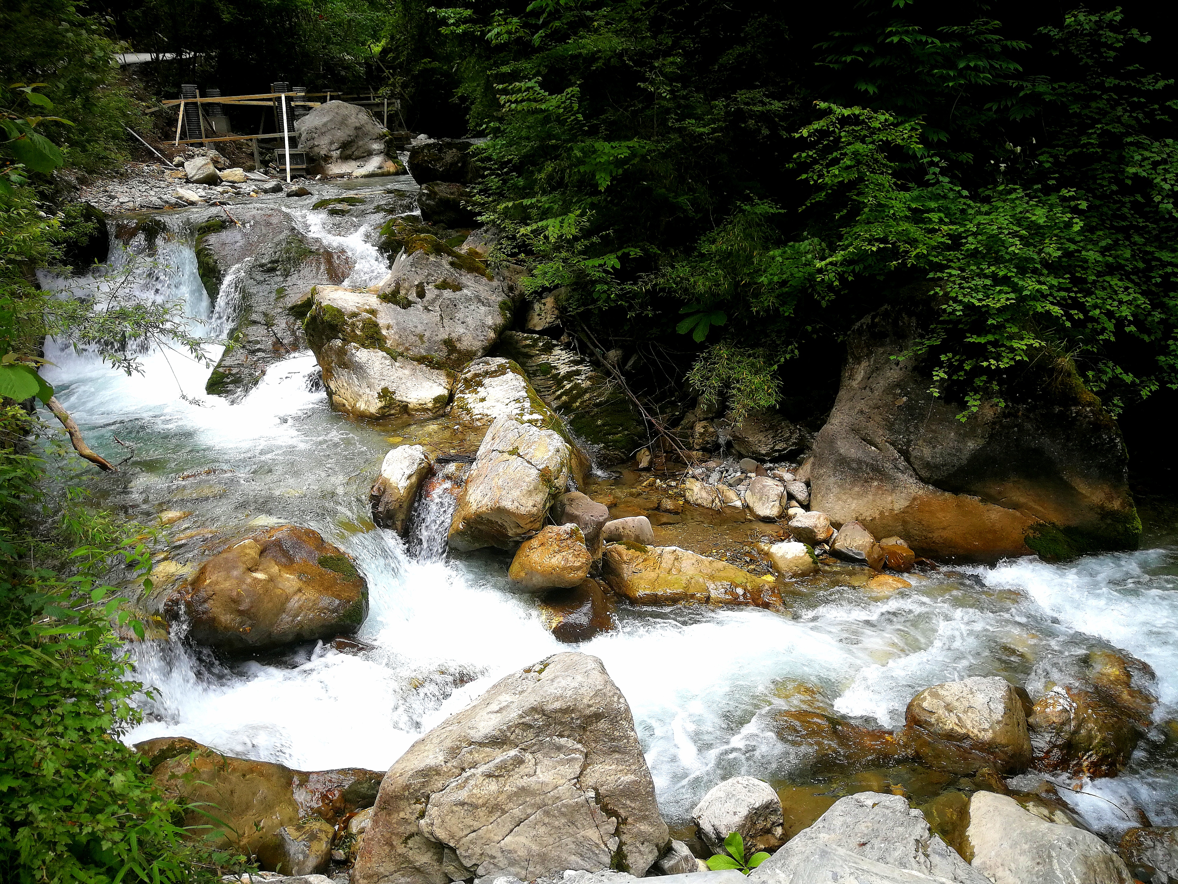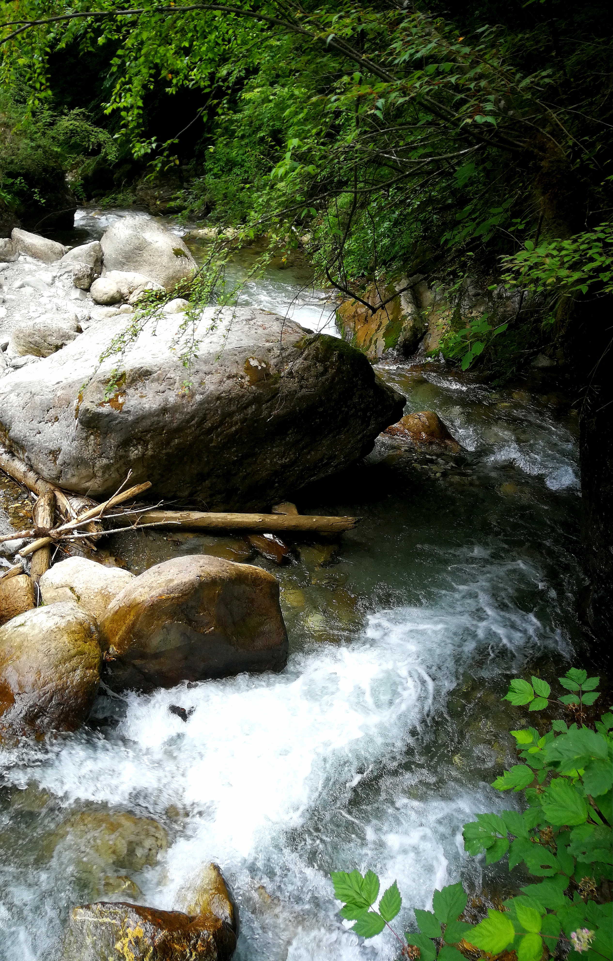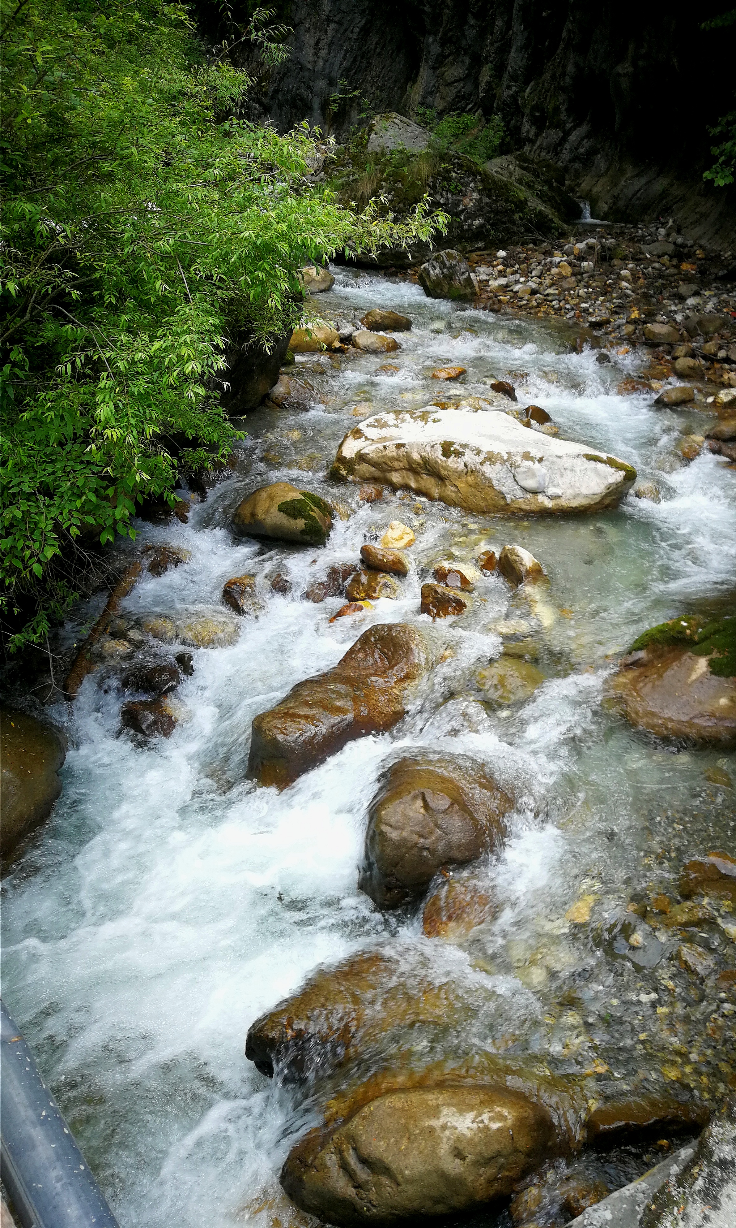 你会看到,官鵝水果然名不虚传,现在仅是初夏,但山沟里的水奔腾向下,绕巨石,拐急弯,发出响亮的声响。