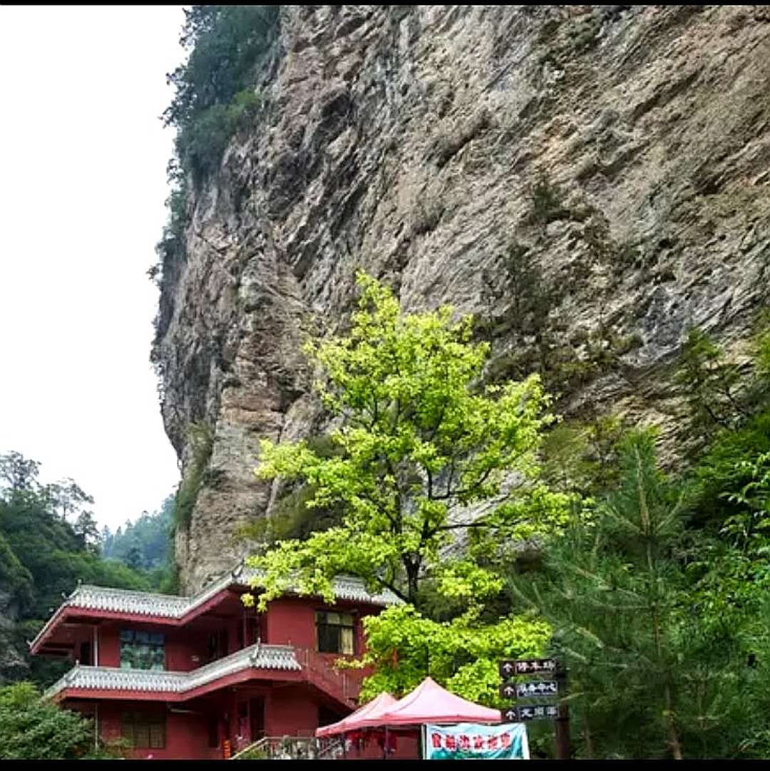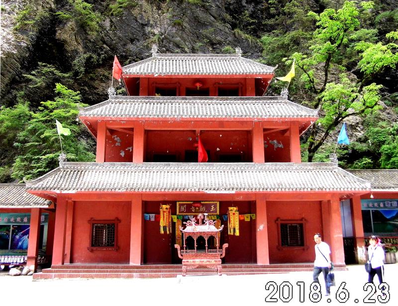 来到一处叫玉观音阁的地方,它就座落在一高耸的大山悬崖峭壁之下。