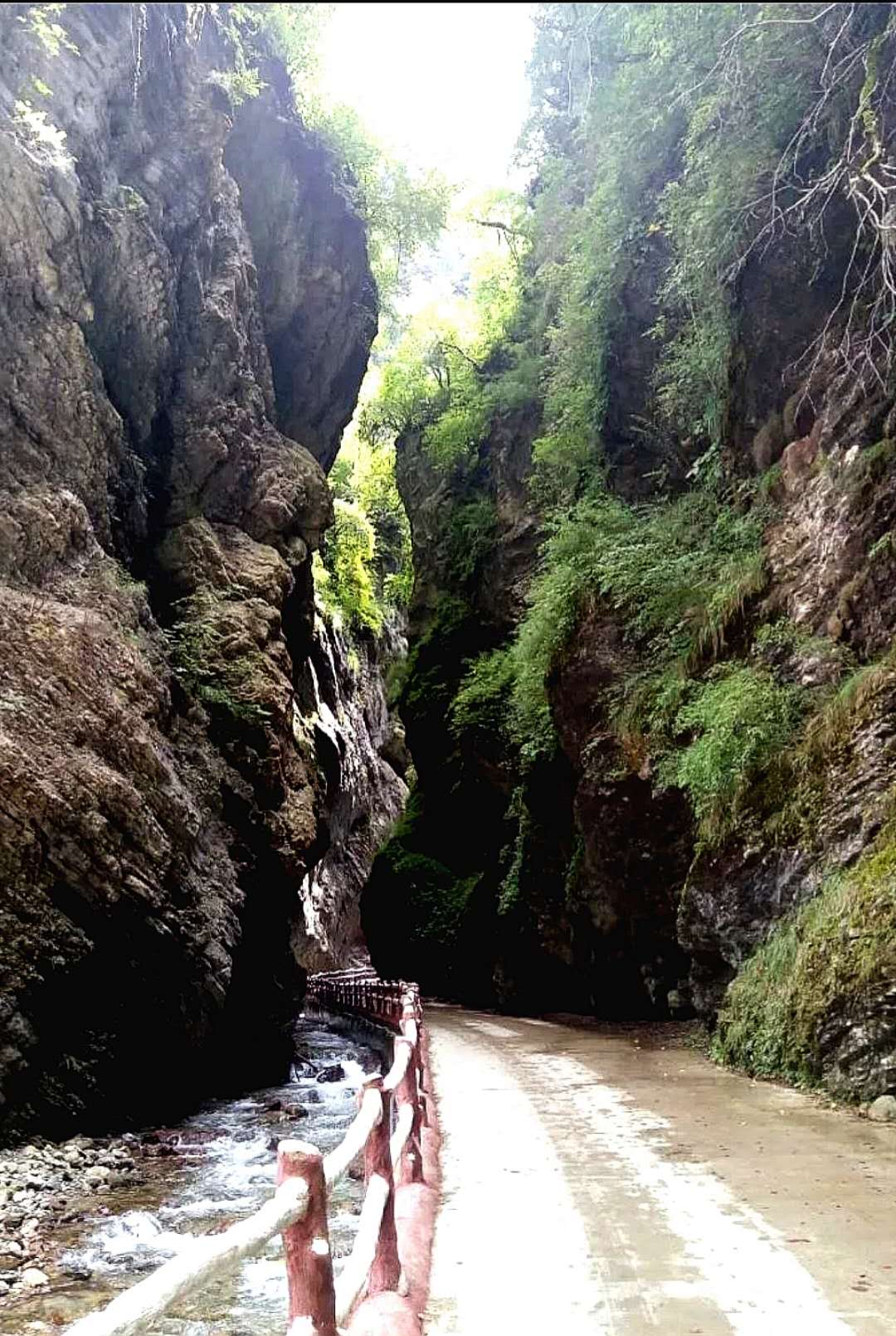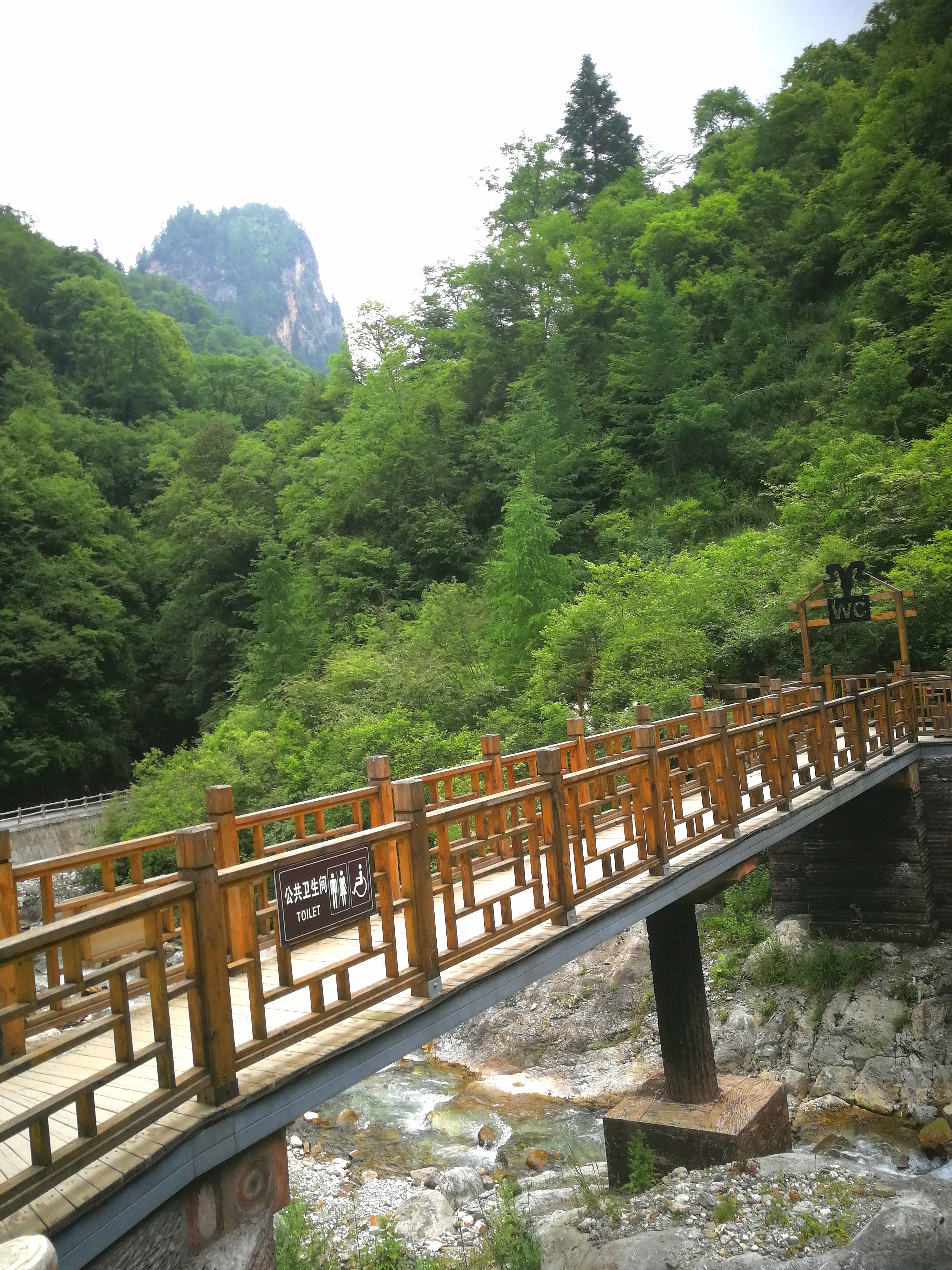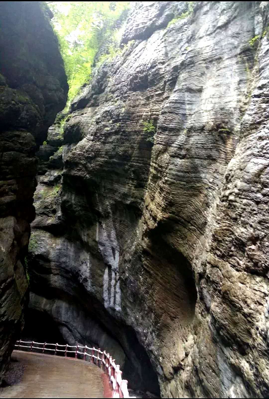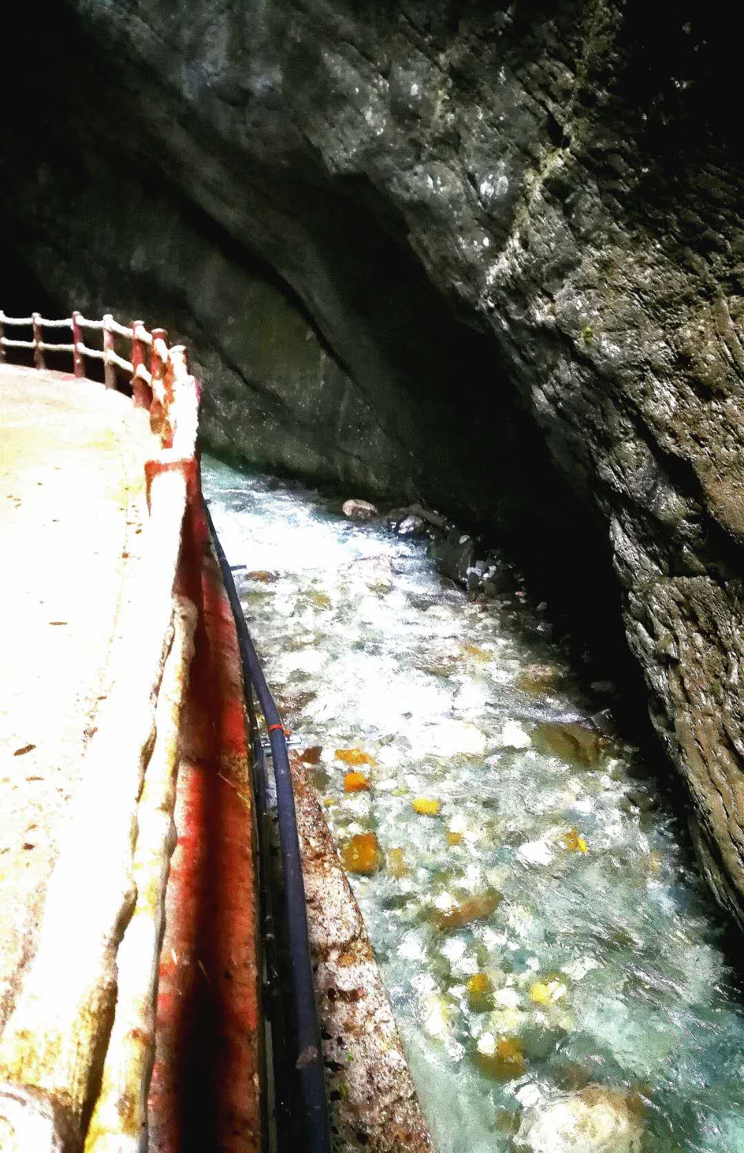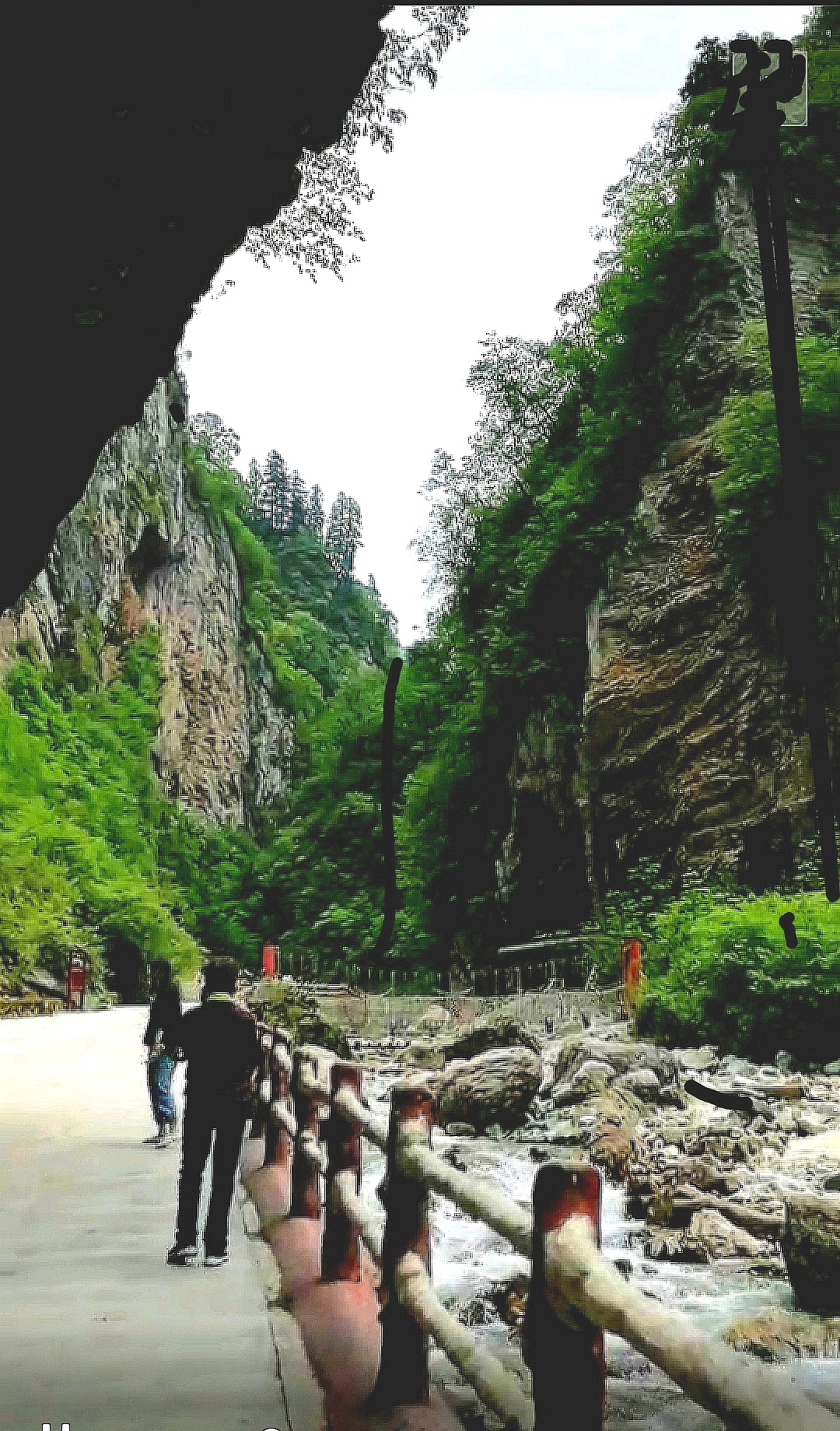 峡谷中怪石嶙峋,并有潺潺流水萦绕其间。间或出现的特色小桥,悬崖峭壁下长长的木栈道,不时闪入我们眼帘。峡中植物景观、地质景观、气象景观、水体景观,尽览眼底。
