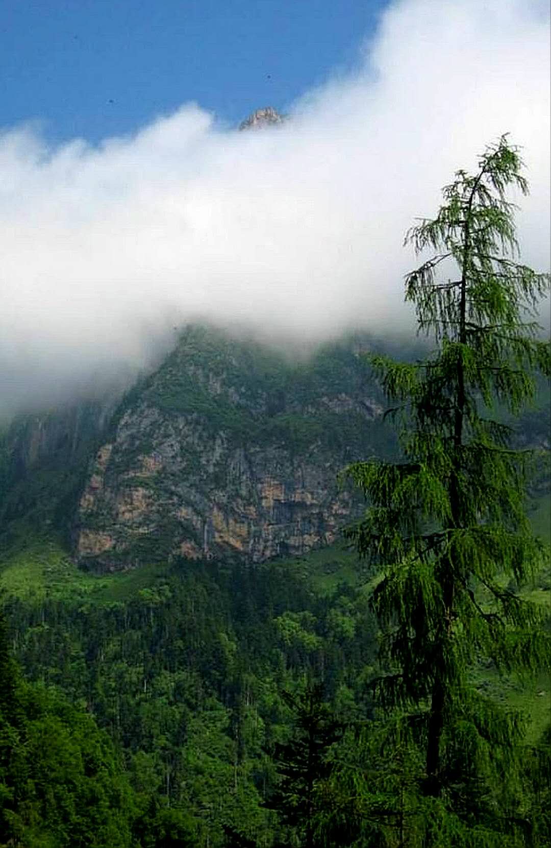 再让我们看那山,以及与之纠缠不休的瀑布。官鵝沟的海拔在2200——4100多米之间,山大沟深,沟壑众多。30公里的距离,近2000米的落差,使得山地切变极大,从而丰富了山川、沟壑、瀑布、溪水的无穷造化。