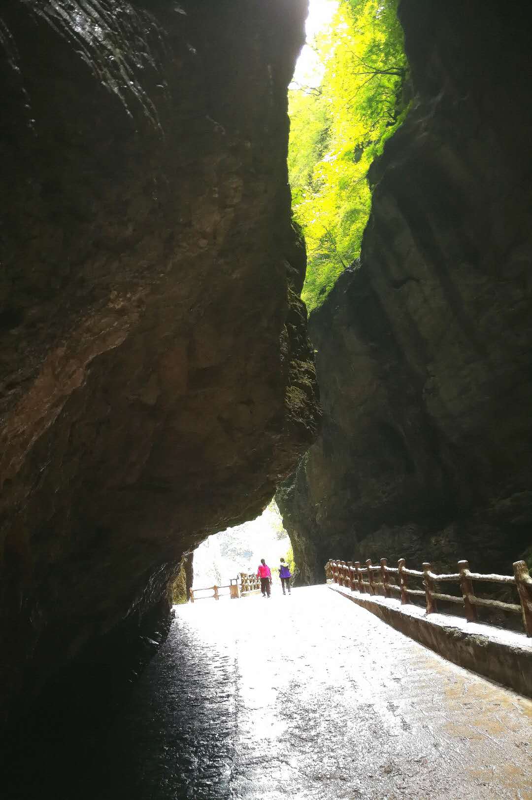 几经闭合的盘龙峡谷,像巨龙穿洞般的伸展着,百多米的峡谷地面湿漉漉的。