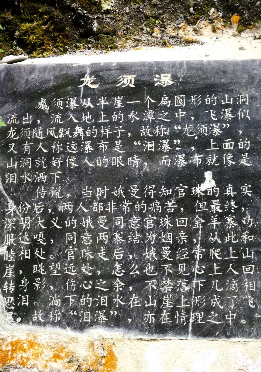 “山还在轻轻诉说官珠的勇气,水还在脉脉吟唱鹅嫚的美丽。只为今生遇到你,就算选择了背离,只为生生世世在一起。为你忘了我自己,刻一个名字在山谷里,官鹅沟的传奇。滋养百草谱新曲,官鹅沟的美丽。”这首歌傾注了对官鵝沟的感情。