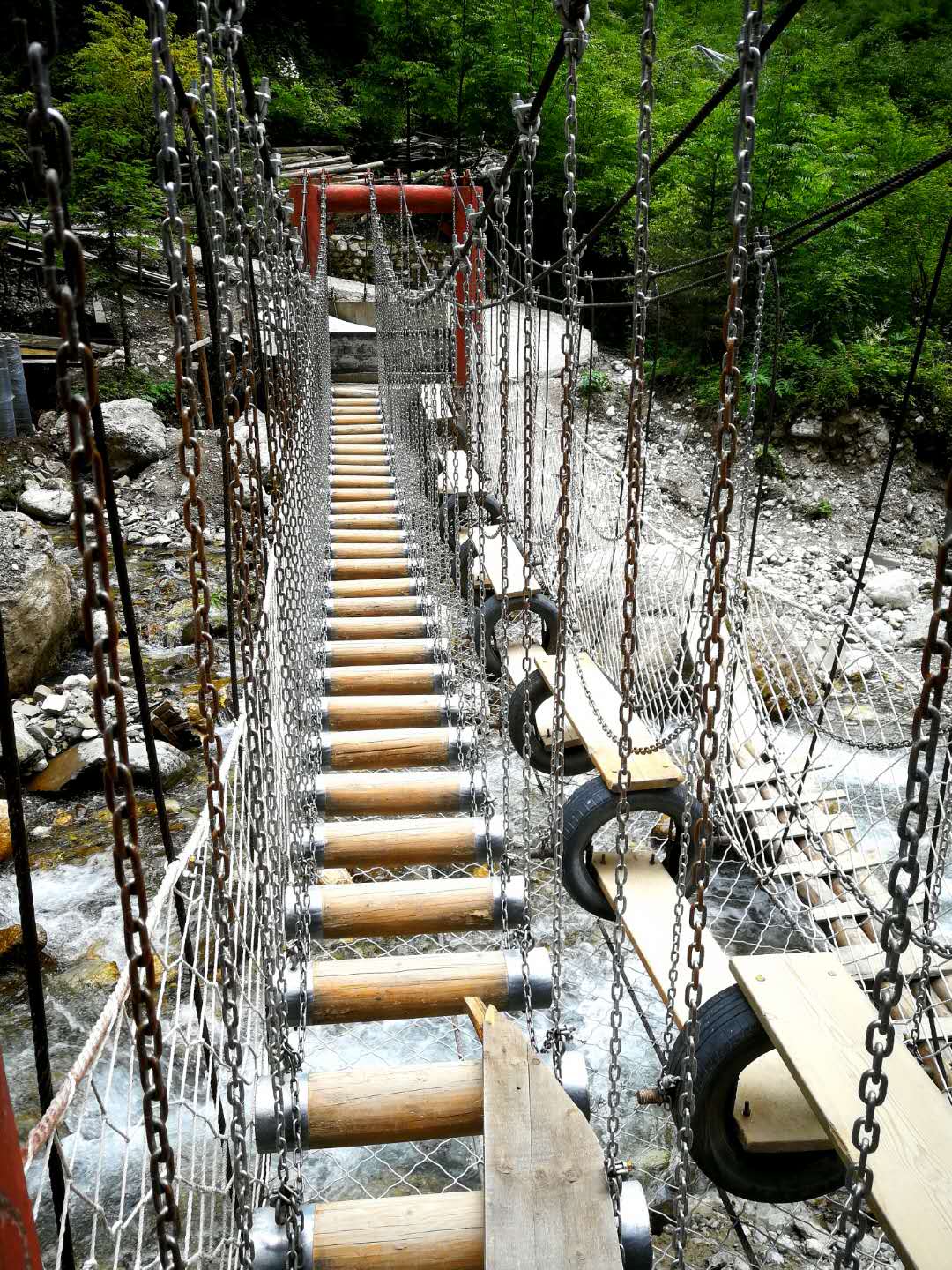 修建中的铁索桥,横跨溪河之上。通往新的景点,景区正在进一步建设之中。