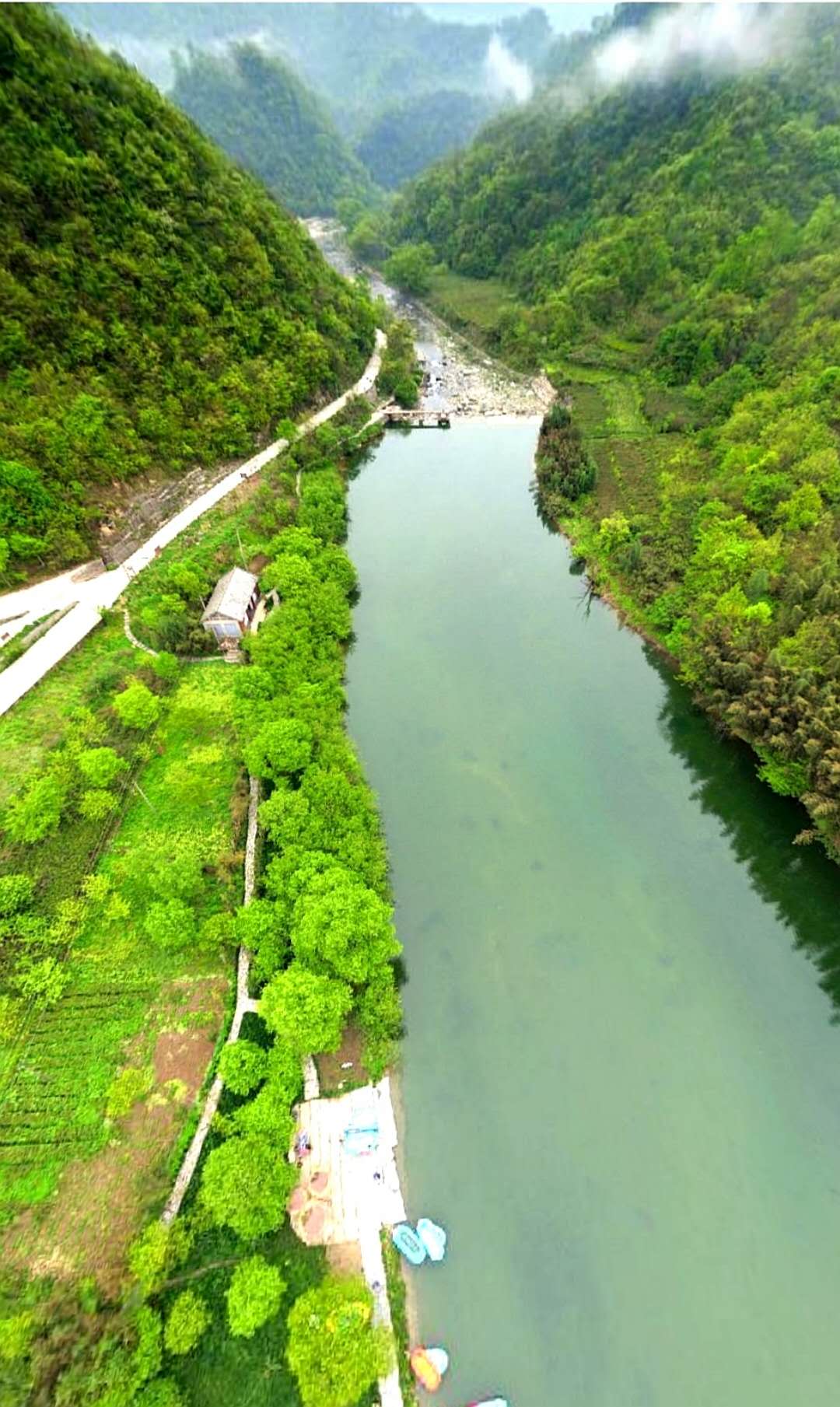 突然,“山穷水复疑无路”...,原来是两座大山挡住了去路。我们要进入著名的盘龙峡谷了。