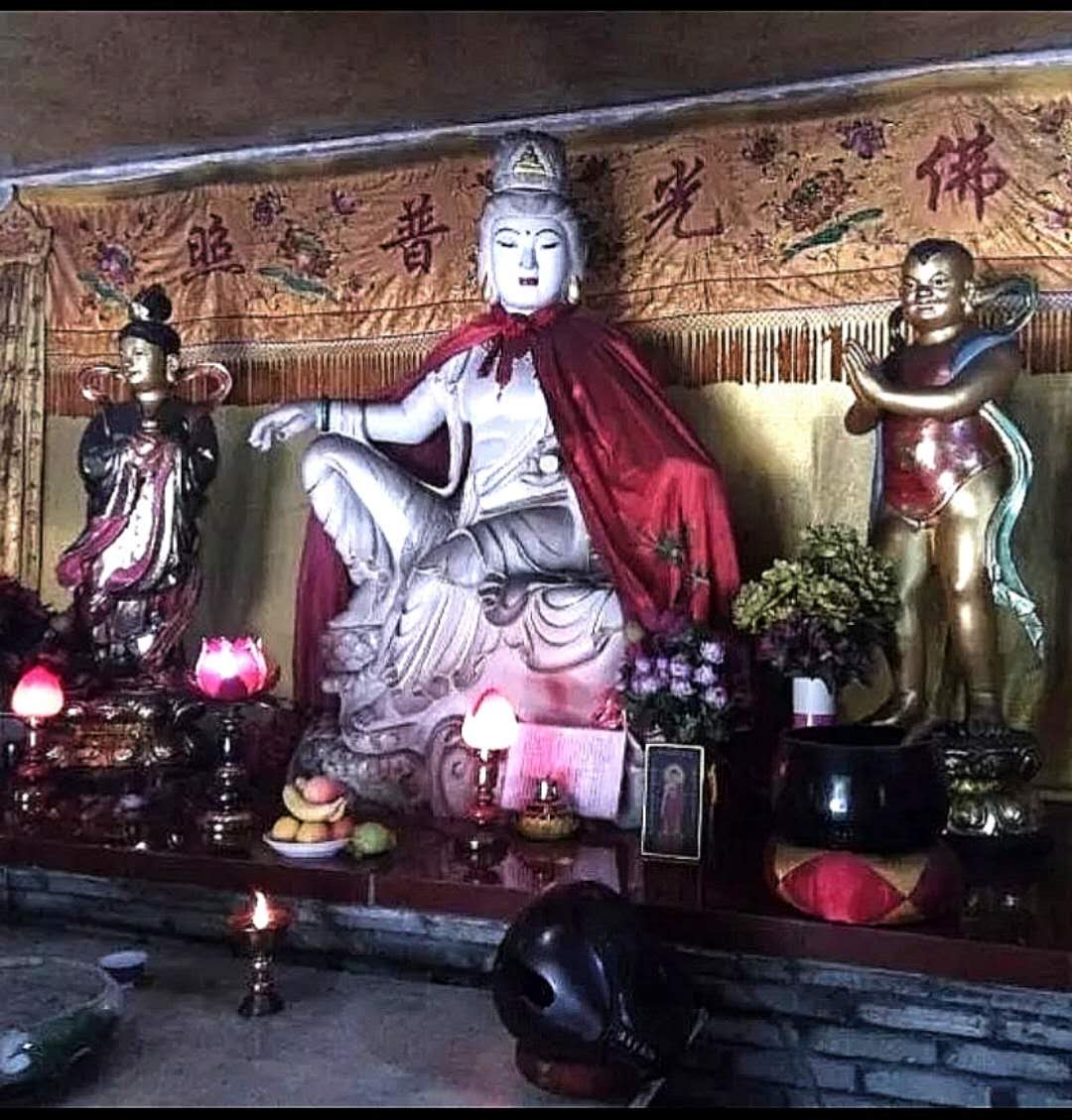 里面坐在莲花座上的玉观音眉目清秀,大慈大悲,普度众生。两边站立着她的童男玉女。