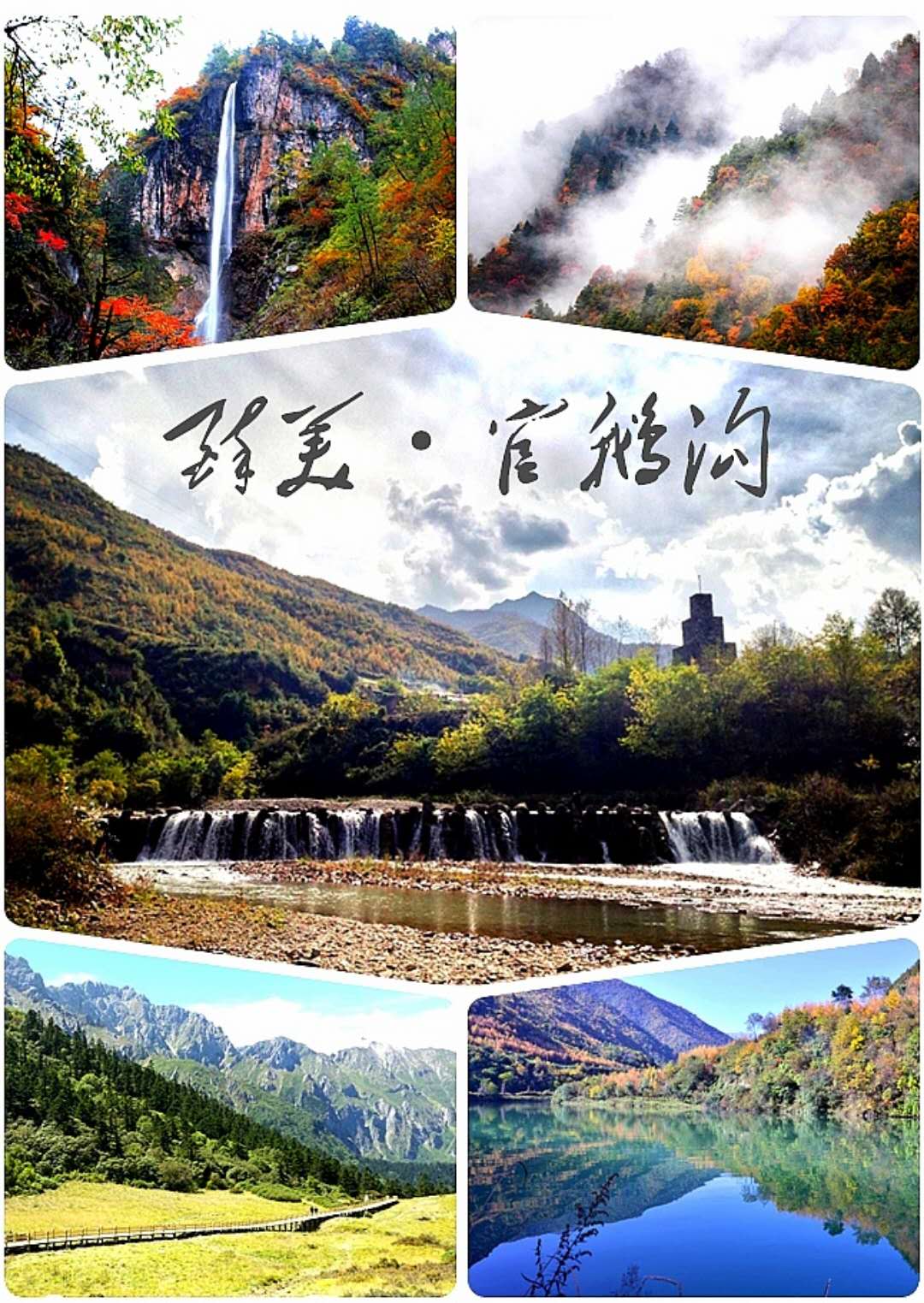 如果说,我的“九色甘南游”系列格图前四集,主要是描绘了甘南的风土人情,挖掘的是文化内涵的话,那么,现在我要讴歌的是,近年来才开发就鹊声四起,陇南热门景区排行榜第一名的景点——官鵝沟。