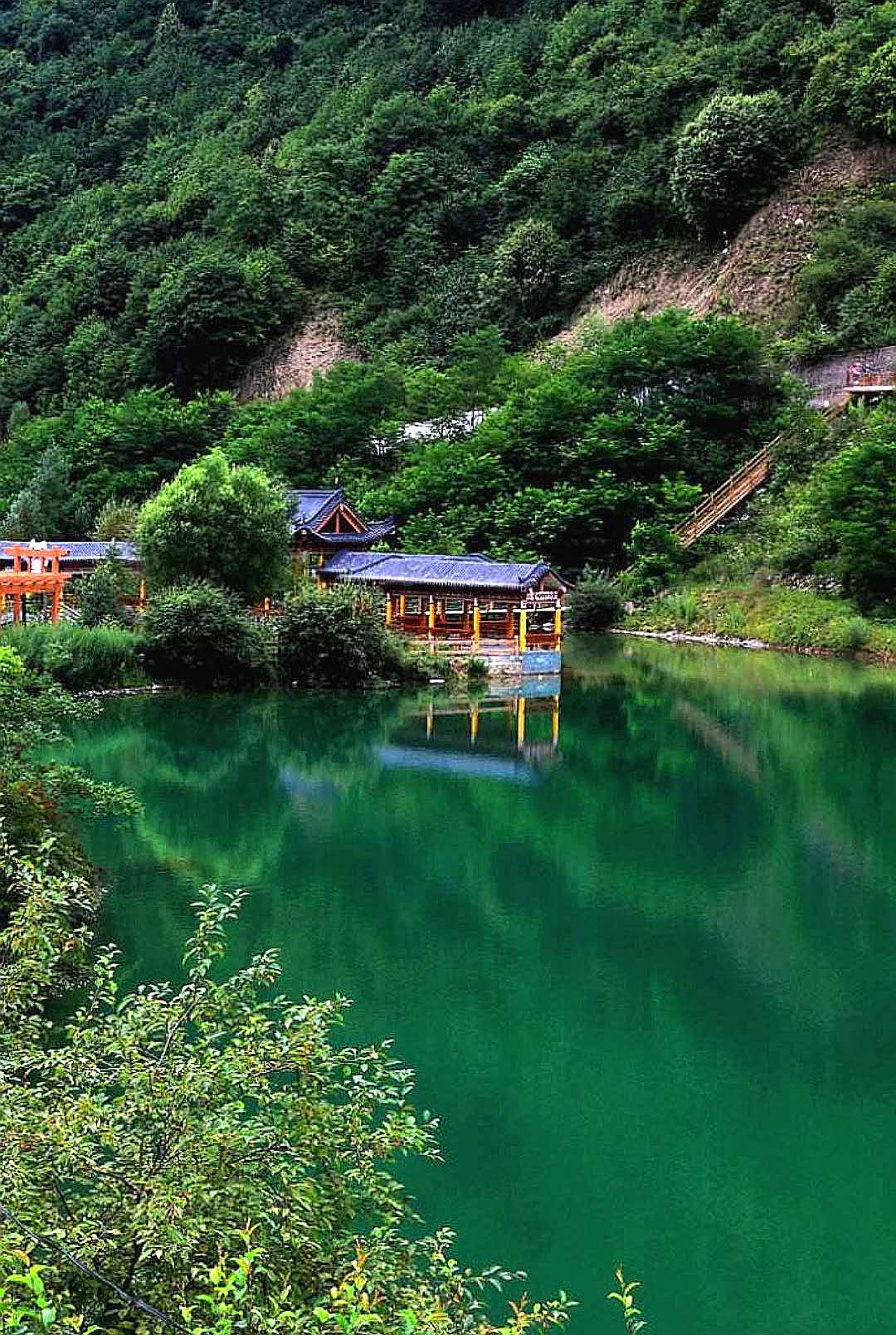 官鹅沟则以奇险而著称,当你看到鹅沟景区里从高山之颠,或半山之中,或石层夹缝当中,那高低、大小不已的瀑布,更多的表现一种原始情趣,幽静深邃的境界和氛围。