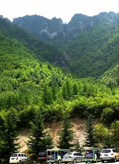 在第一停车场到第二停车场之间,东西群山形成一个峡谷,一边山势险峻。峭壁千仞,另一边则山势平缓,四周秀丽宜人。