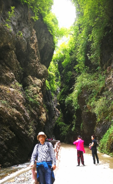 一条小溪像一个頑皮的孩子,在石上清澈的流淌着。走在“游龙”的峡谷里,凉爽宜人,感觉既刺激又兴奋。