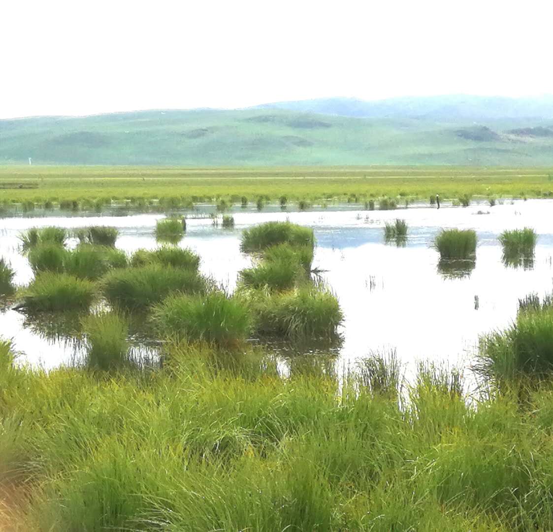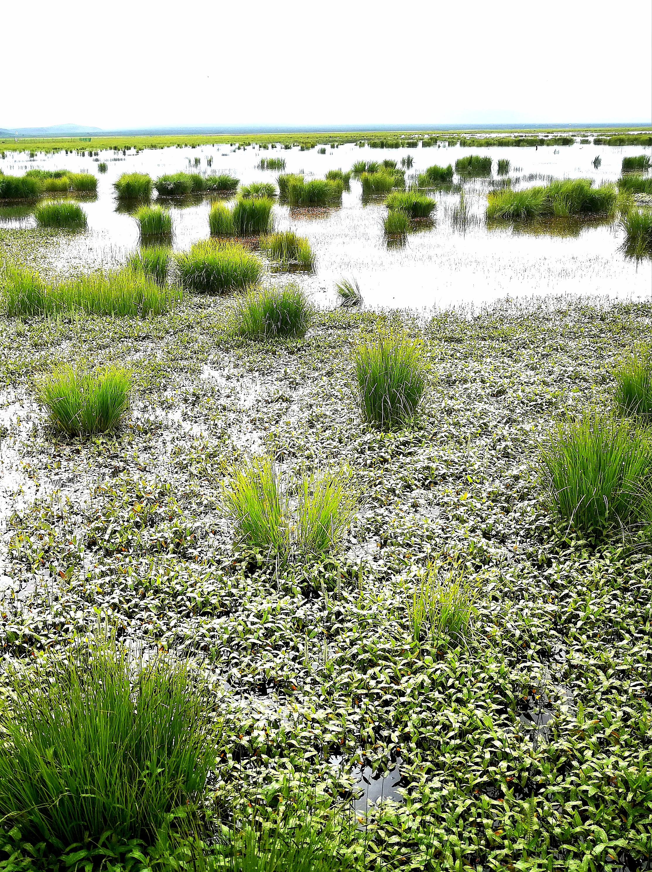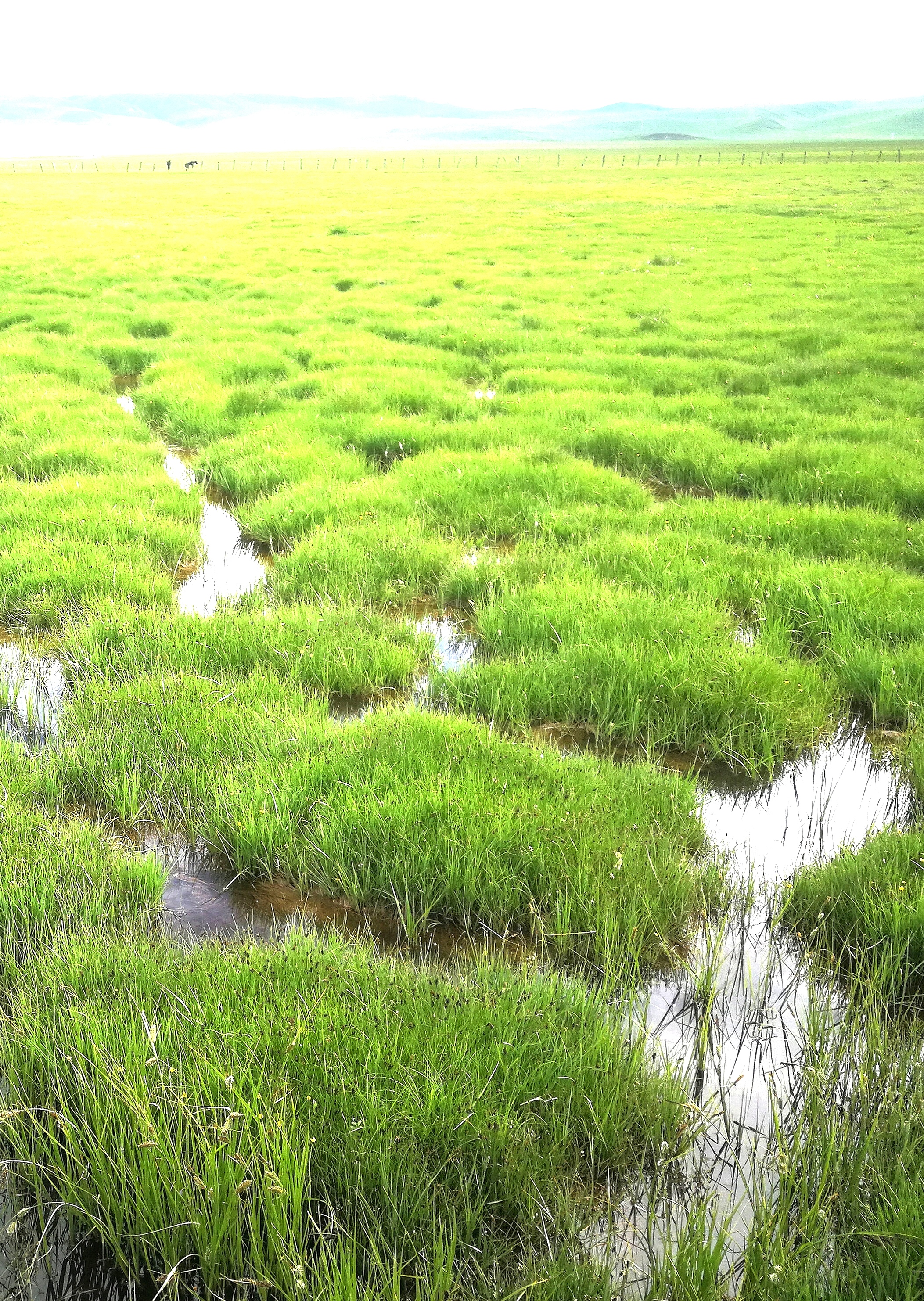 走在长长的木栈道上,观广阔无垠的热尔大草原,看湖底清洌的湖水中会开满姿意生长的白色花朵,绿草和鲜花一直长到天边。