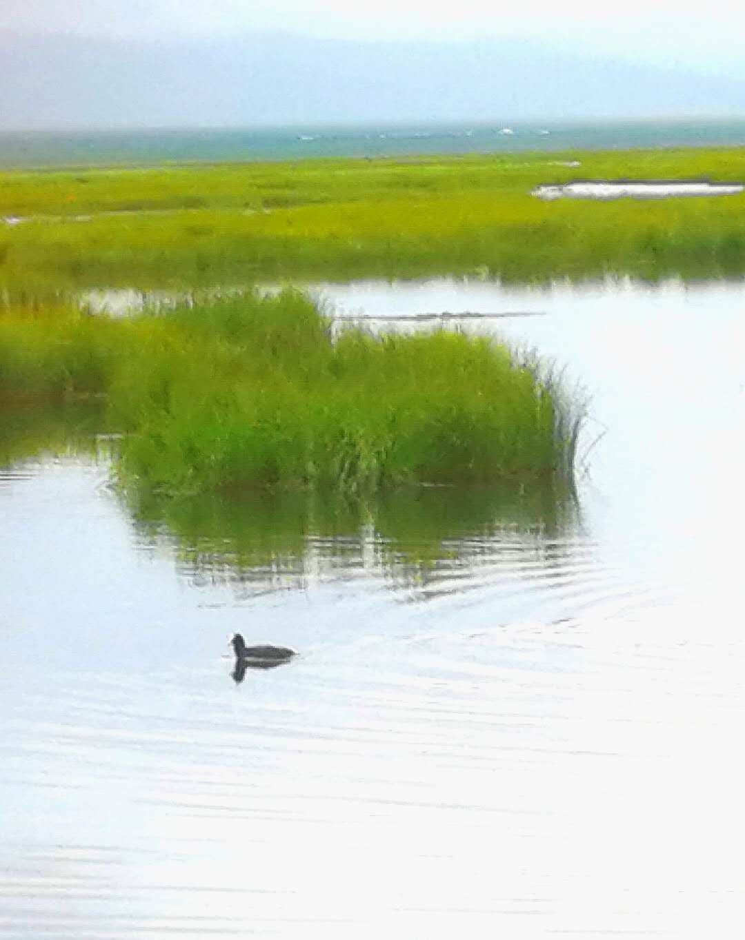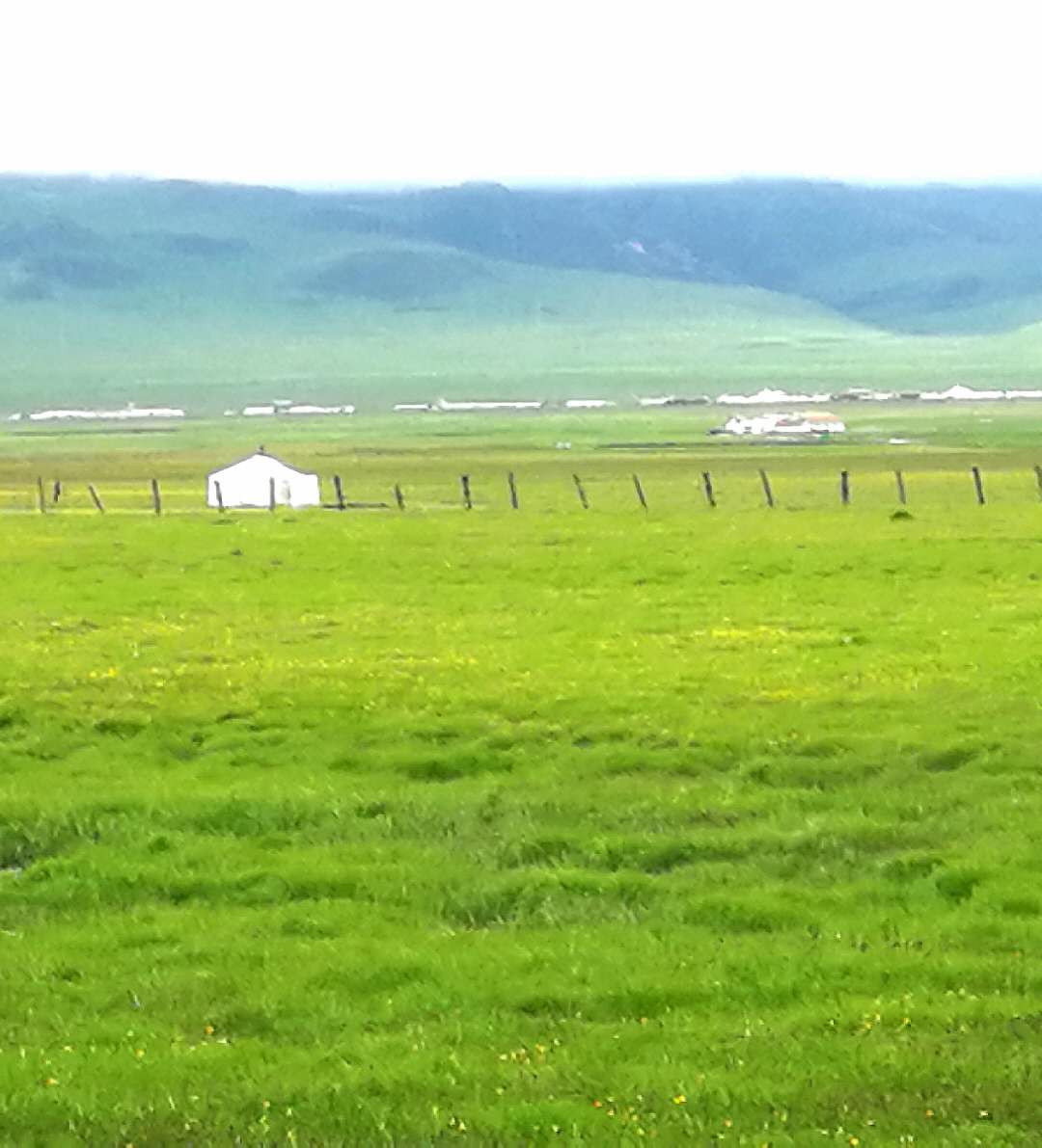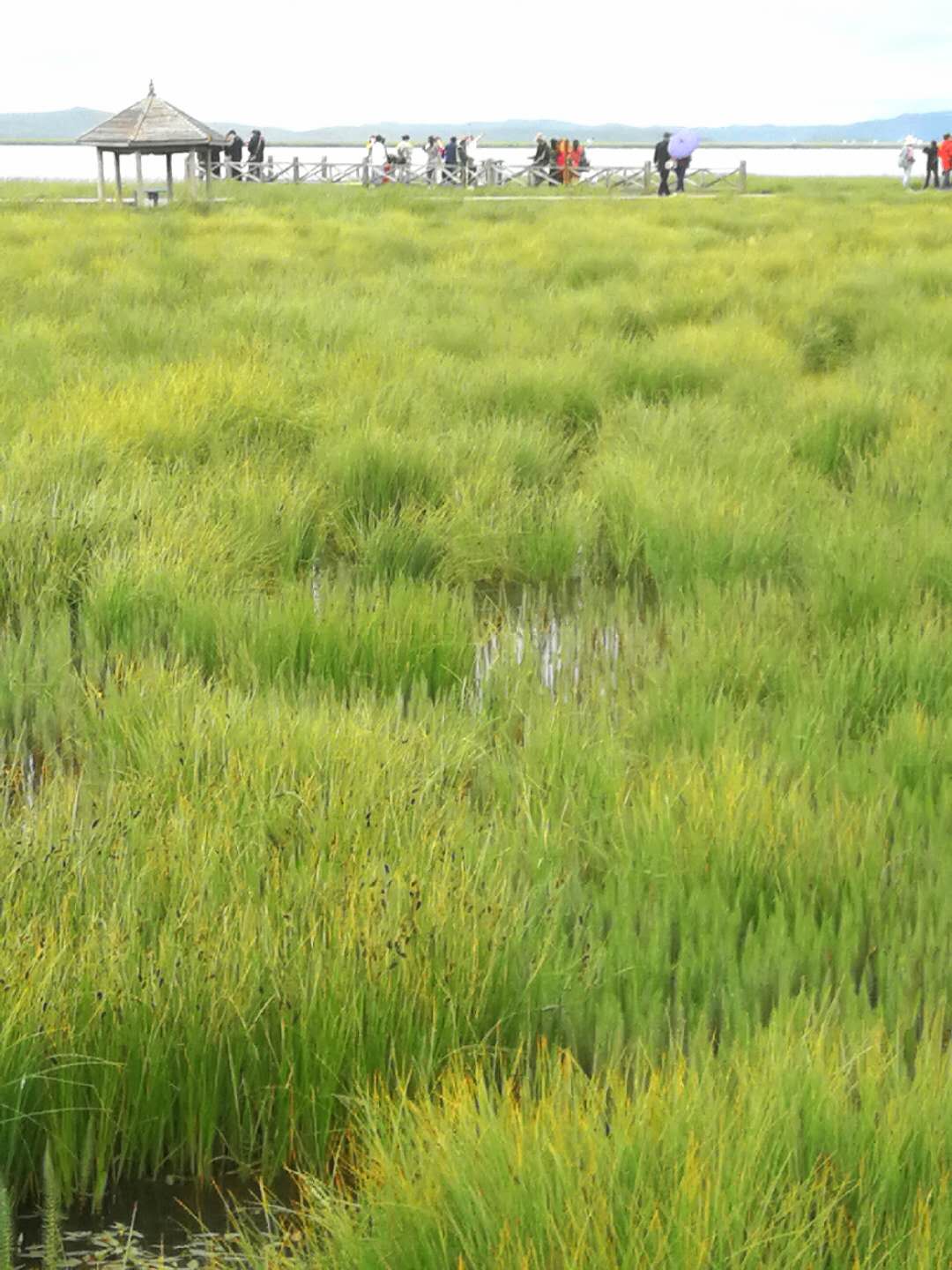 还有十多里呢!我们乘坐景区的游览车前往湿地中心。草原列阵而来,满目皆是青翠湖草。走马观花,竟也十分的惬意呀!