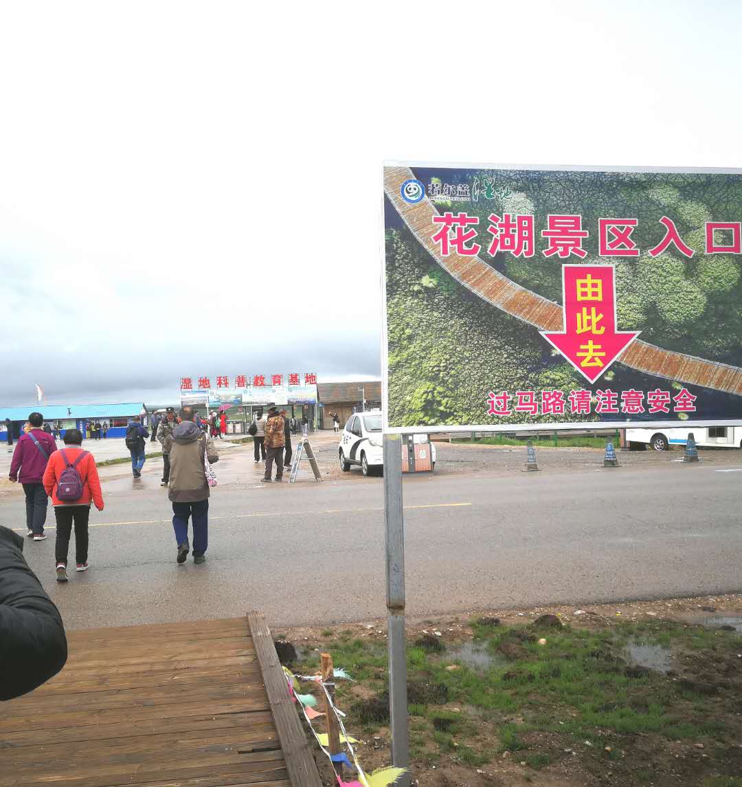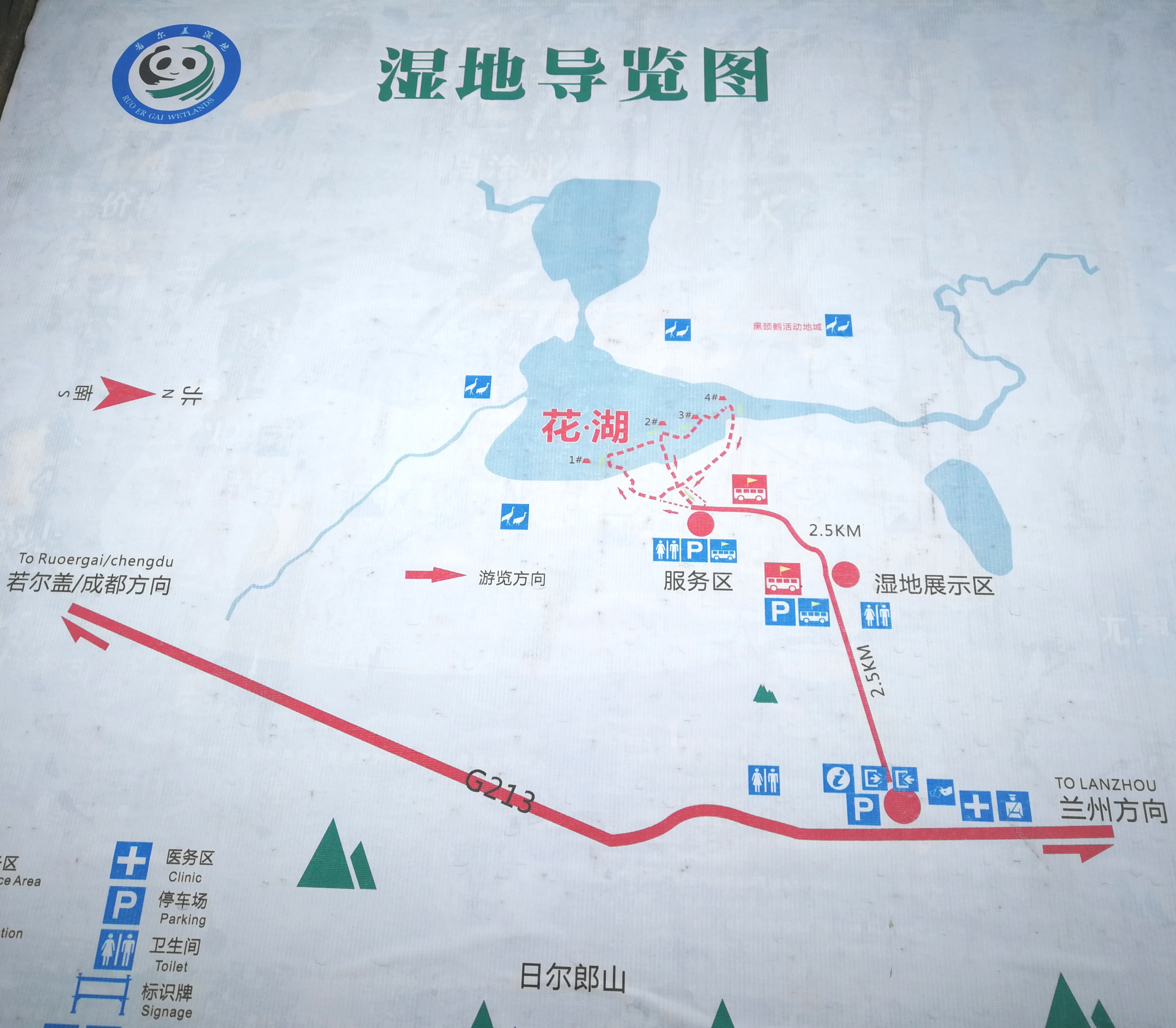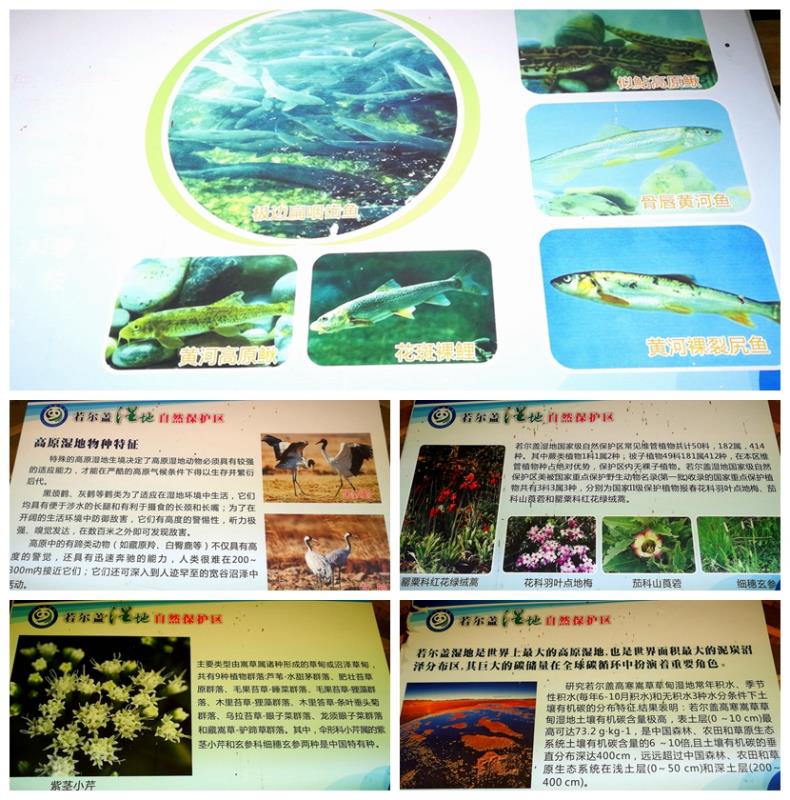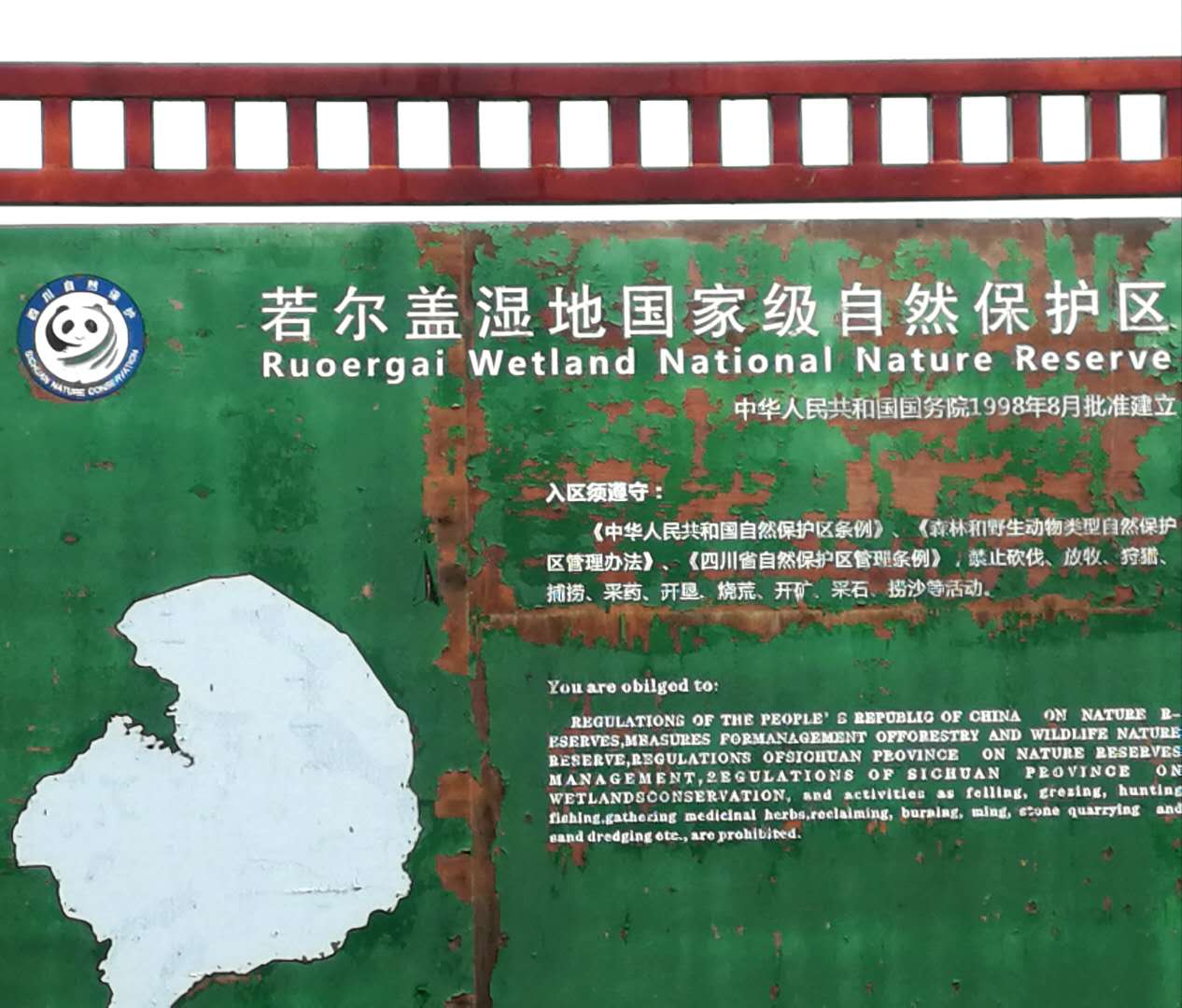 “若尔盖国家级自然保护区”的宣传栏板及湿地导览图在景区门前竖立着,非常方便游客阅读了解。
