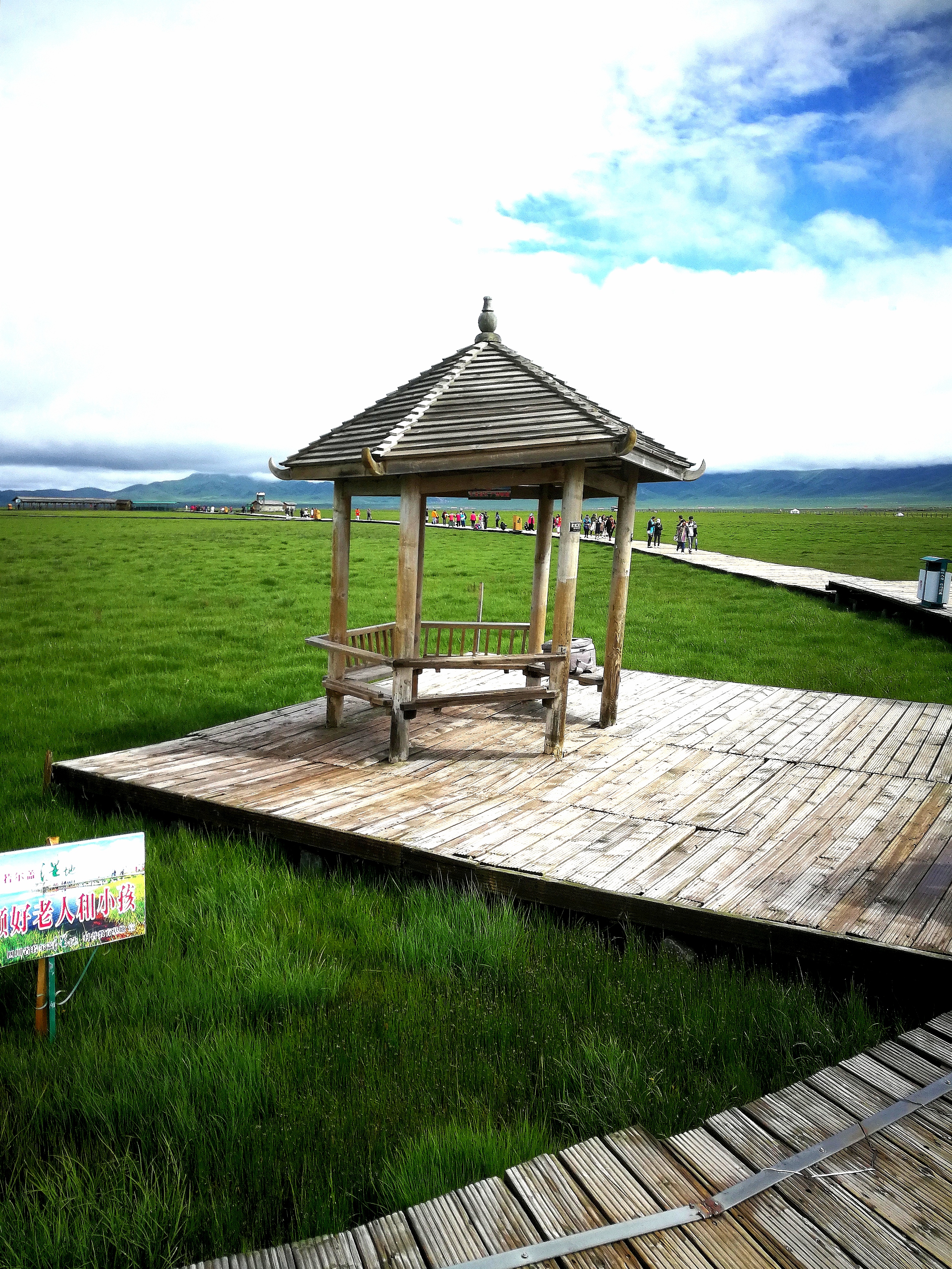 为保护景区草原,景区修复、扩大了栈桥长度,直抵湖中,还设立了一些木亭为游客游览、拍照、休息提供了便利。