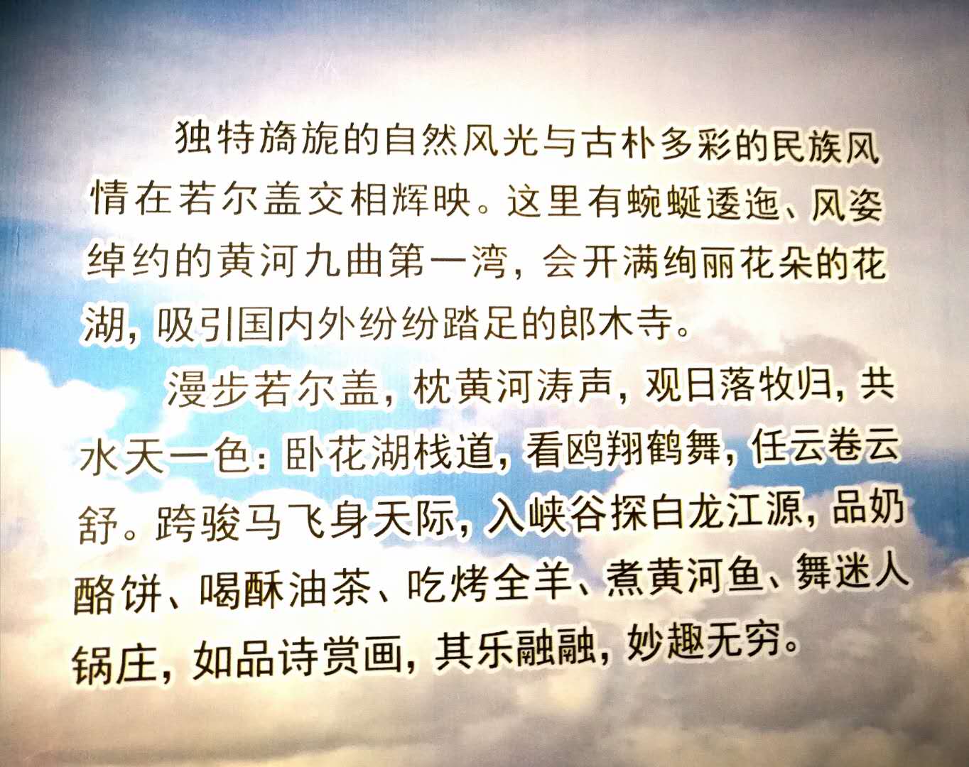 听到这动人的歌声,不由让人想起红军长征跋涉过的大草原,而这正是我们要到的四川省阿坝藏族自治州的大草原呀!海拔3468米的若尔盖热尔大坝草原,是我国仅次于呼伦贝尔大草原的第二大草原。
