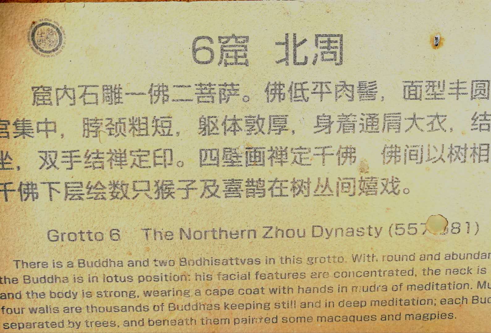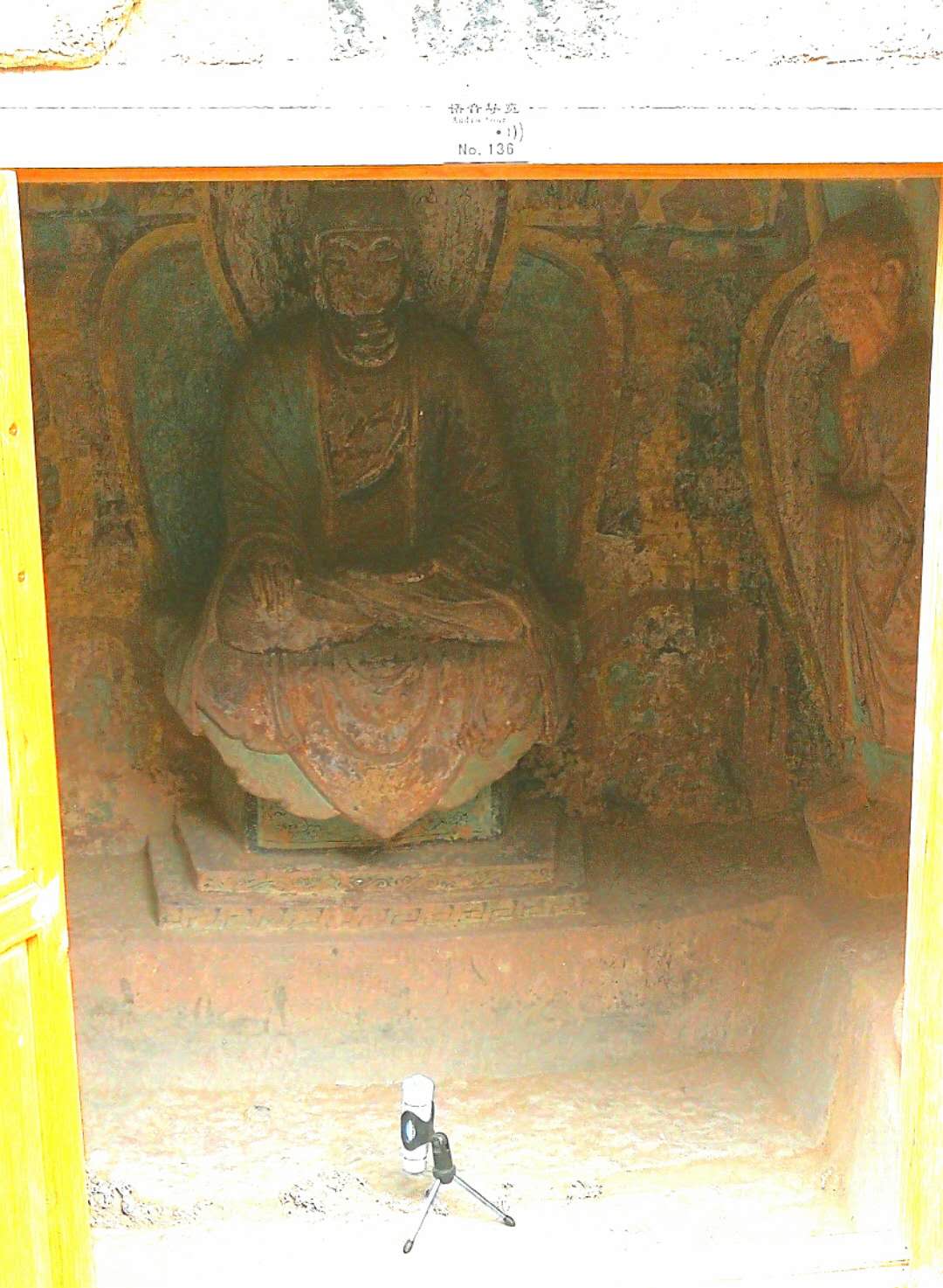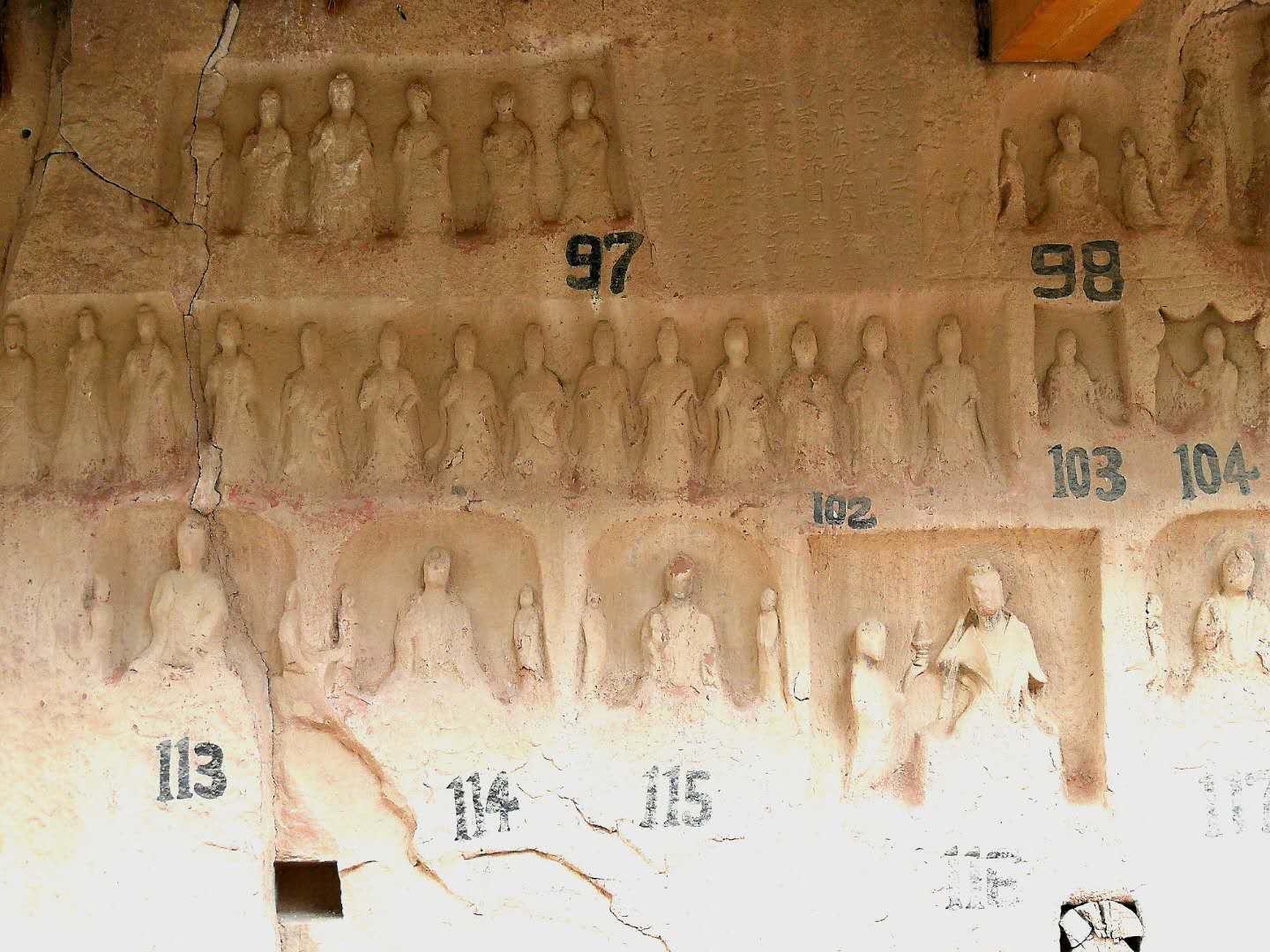 这是第一号石窟佛像,该窟中有西秦建弘元年(公元420年)名僧法显的墨书题记,是国内石窟中保留最早的纪年题纪,对全国其他古老石窟的断代提供了标识,具有十分重要的历史价值。