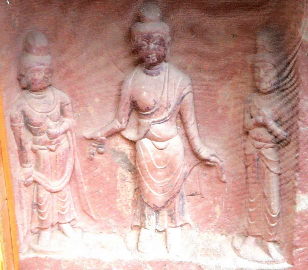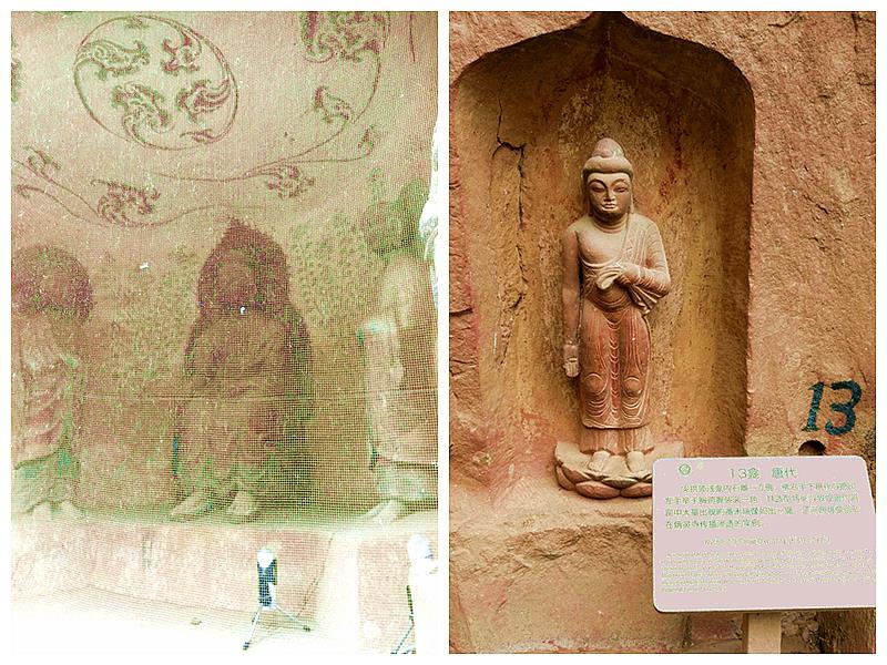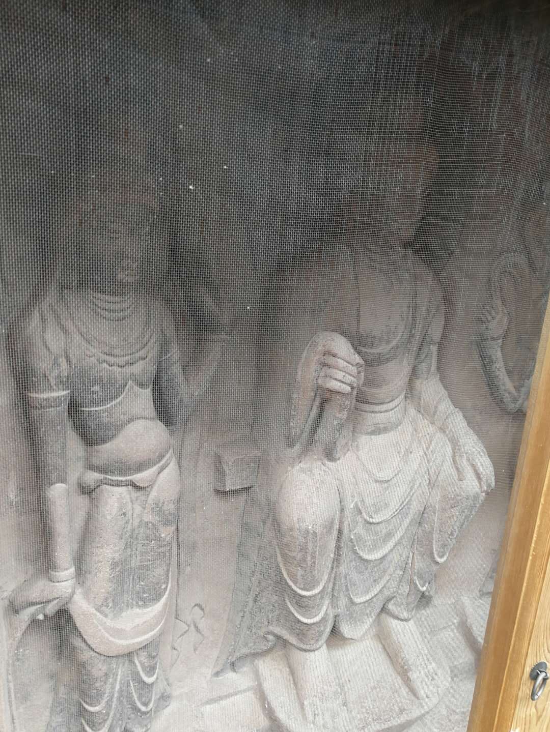这几孔石窟是隔窗观看的,看来已采取了防护措施。