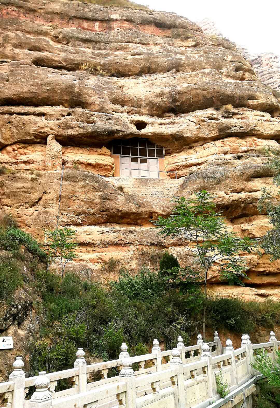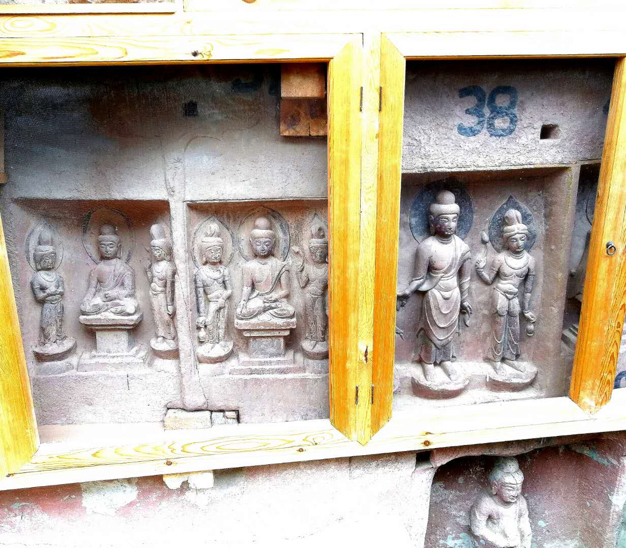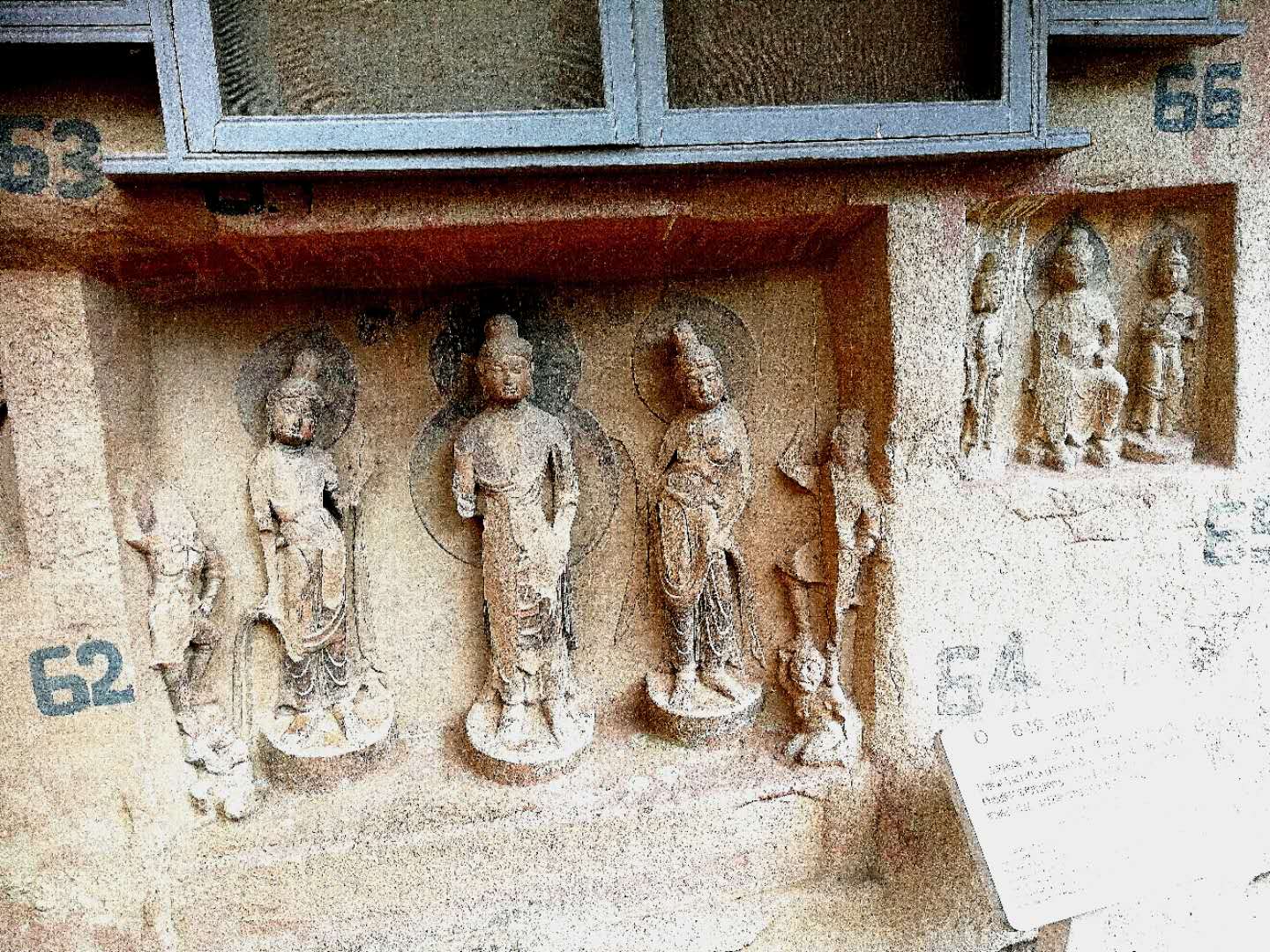 这几孔石窟是隔窗观看的,看来已采取了防护措施。