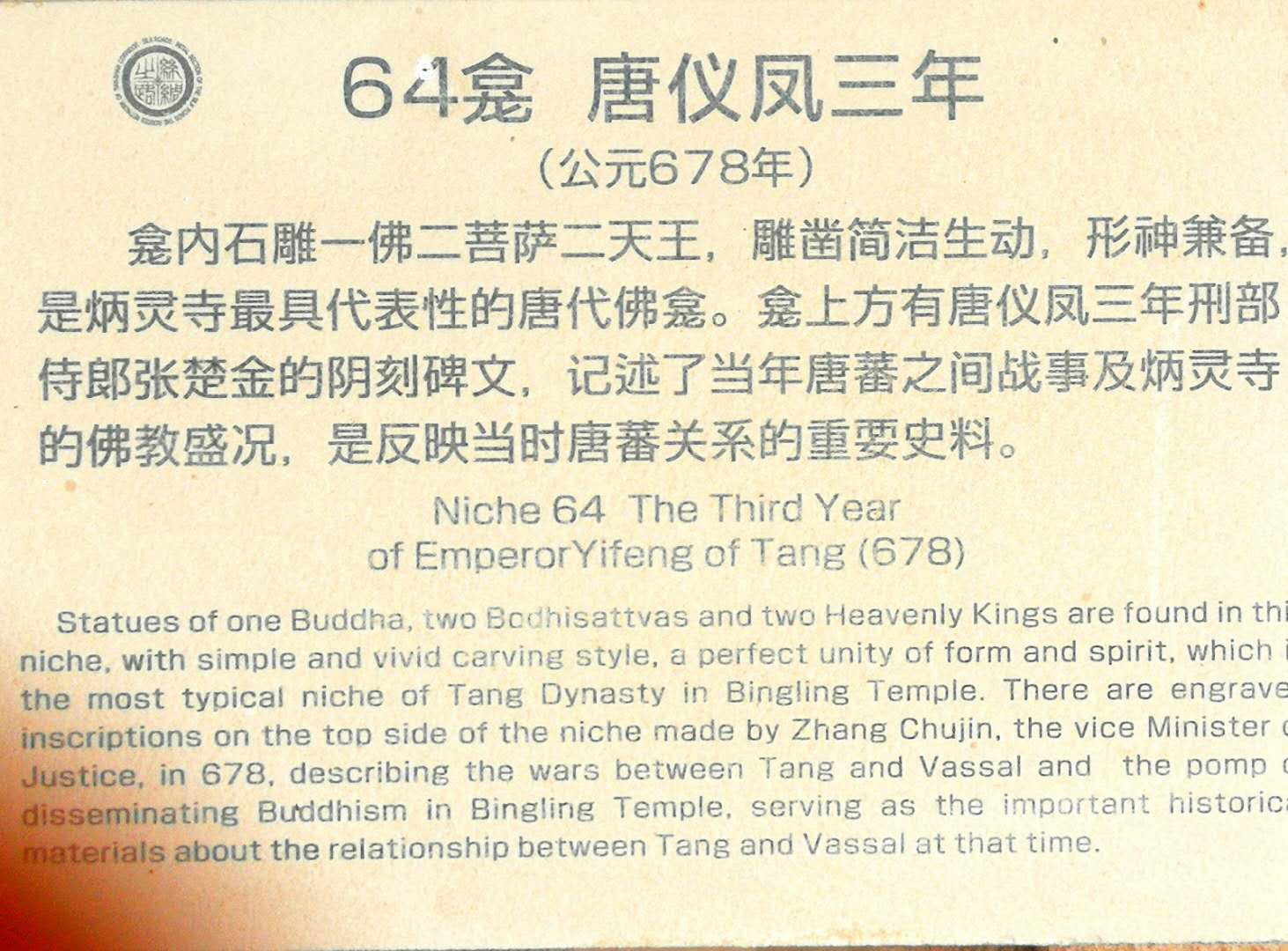 呵呵,这个佛龛上方有唐刑部待郎题写的碑文,记叙了当时的唐蕃战争及炳灵寺的佛教盛况,反映了当时的重要史料。