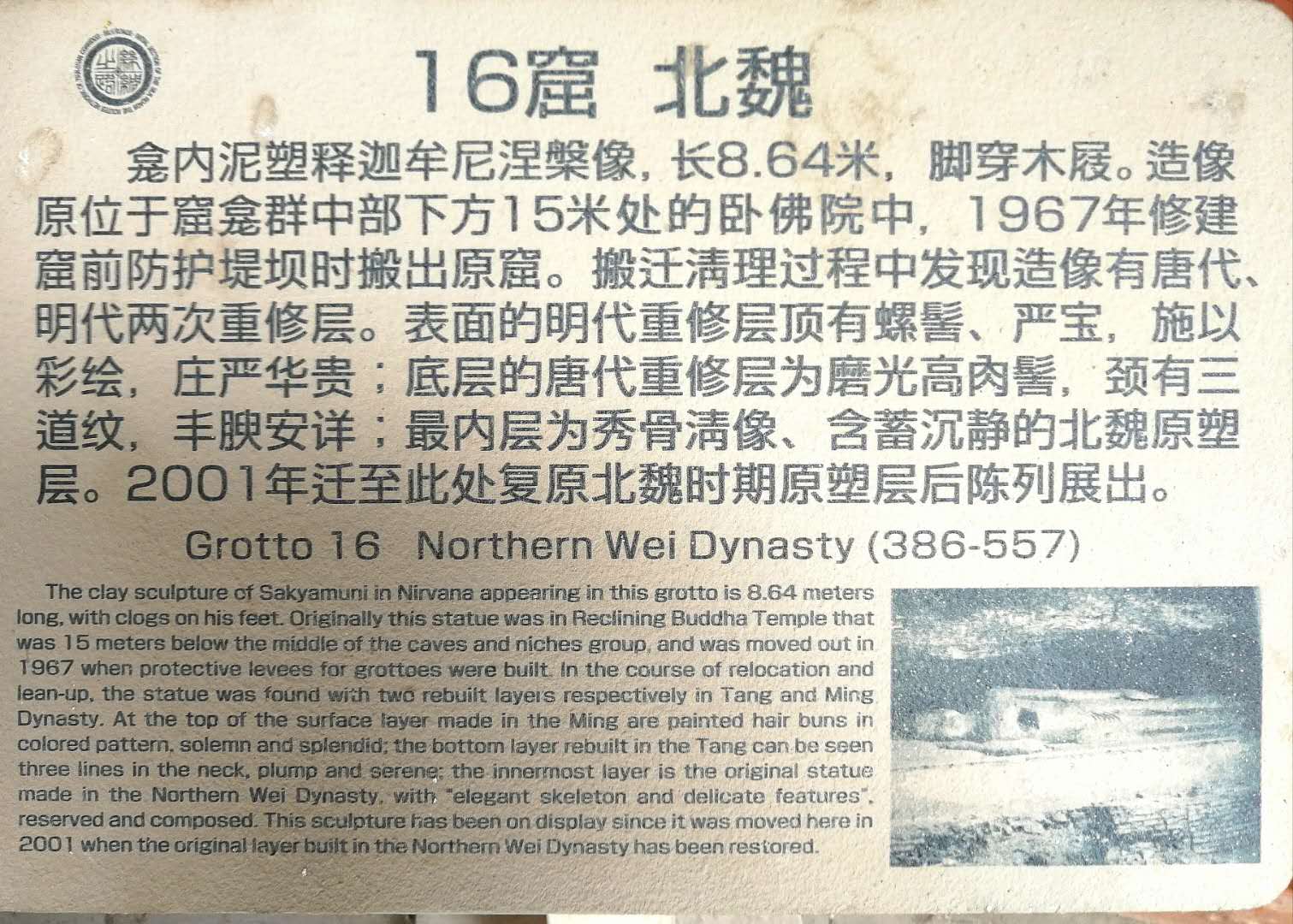 原16号石窟长8.6米的泥塑睡佛原貌(上图),现归位在石窟群对面睡佛殿内(下图),据称这是我国现存北魏时期的唯一一尊卧佛,具有非常重要的研究价值呀!