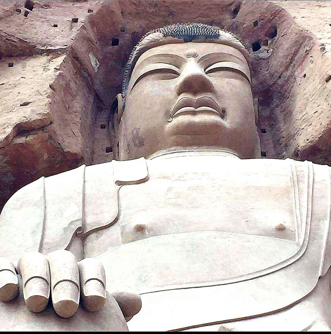 这座弥勒佛大坐像,依山雕凿,高达27米,坐像雄浑庄严,肃穆华贵,遥望远方。可细心观察,发现大佛的左手空缺,不知何故?据称窟中还有西秦的《文殊菩萨问疾图》,是我国目前所见时代最早的一幅维诘经变图。