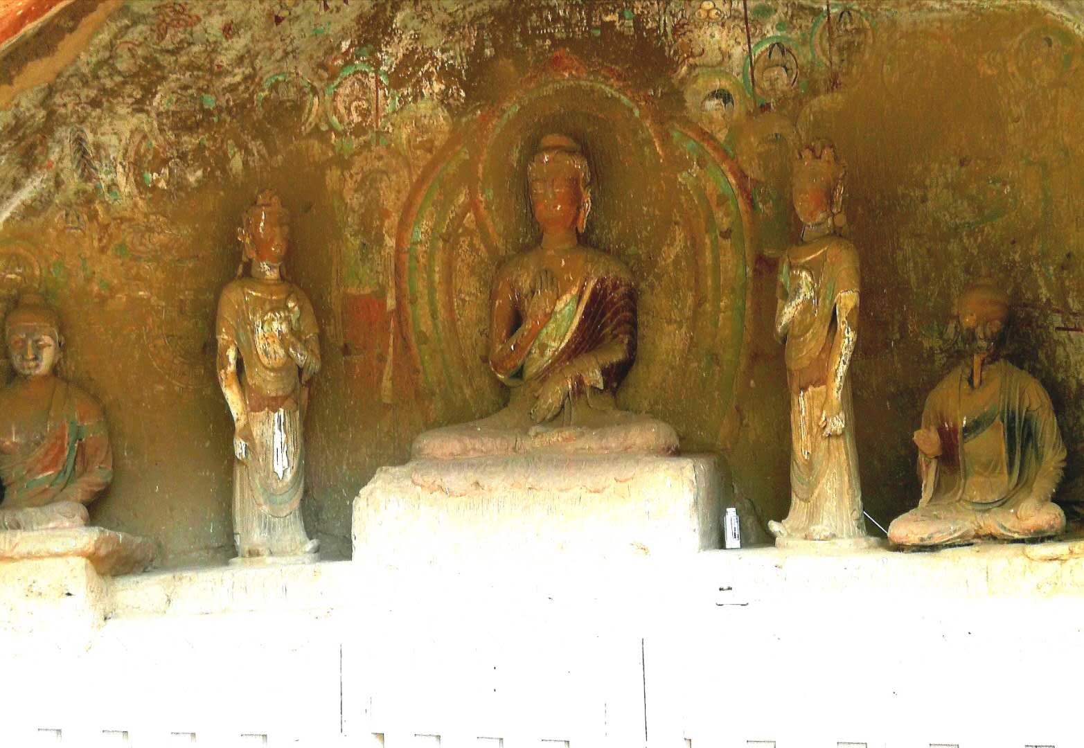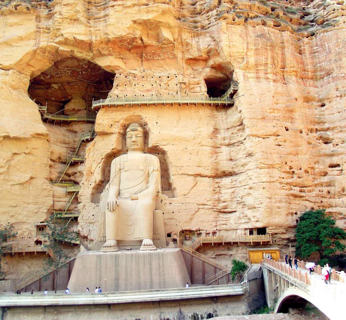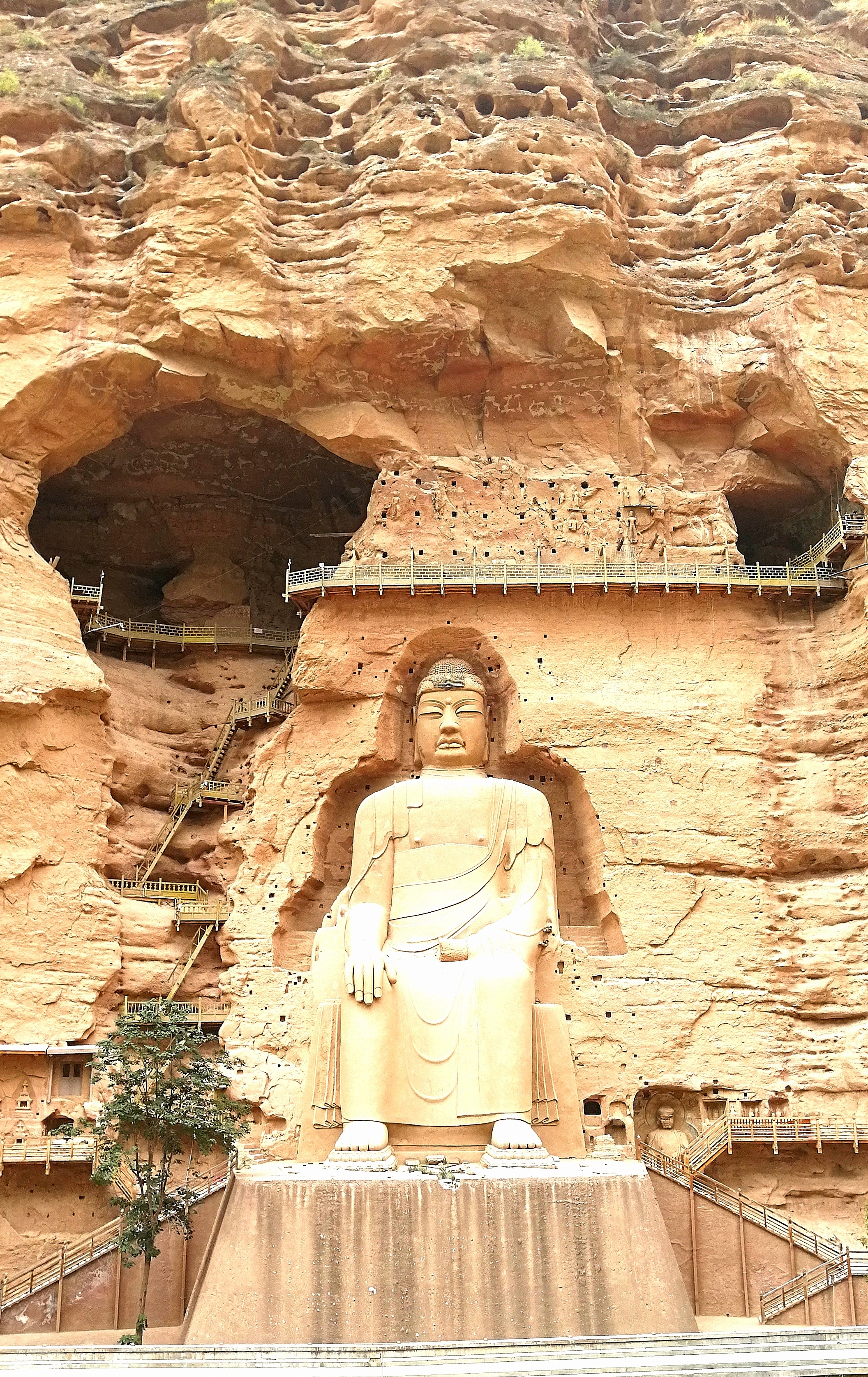 就这样,169号自然窟弥勒大坐佛以及崖面中所有的众多中小型窟龛构成了炳灵寺的主体崖壁。