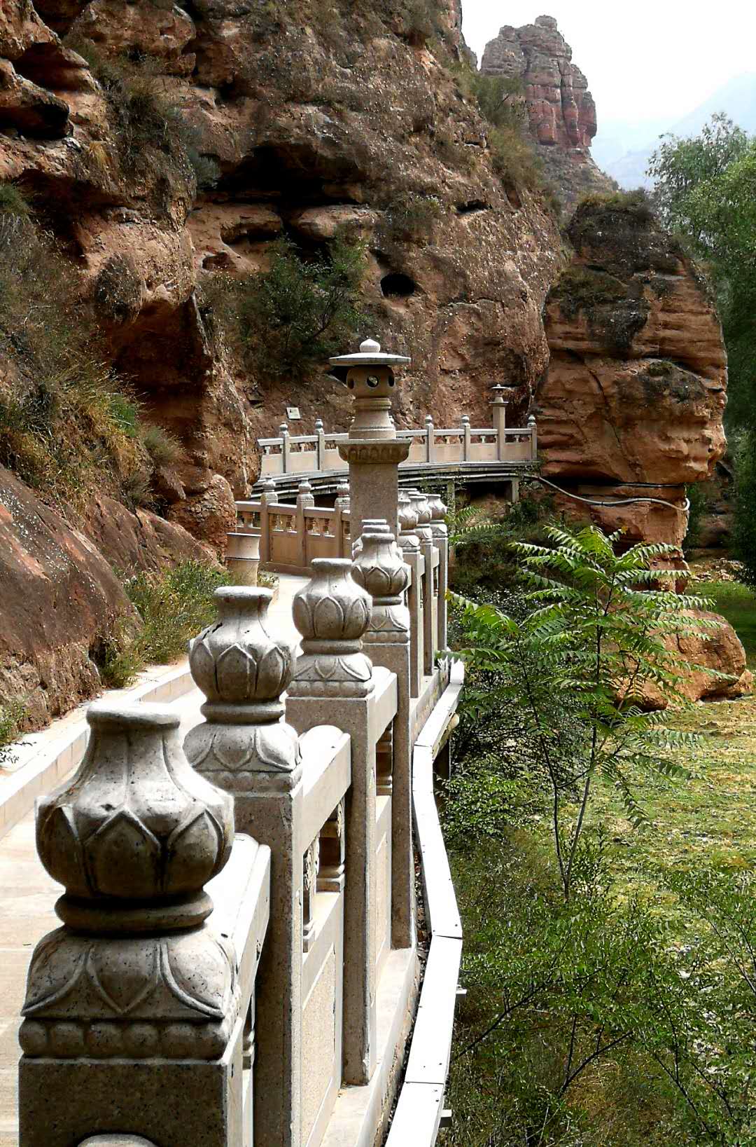 抬头望去,建在崖壁之上,建连接上寺和洞沟的层层栈道。很是惊险、壮观呀!
