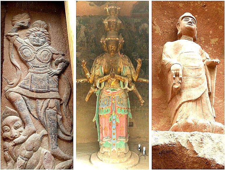 这几幅石窟中,有天神打鬼,彩绘的多手菩萨,行进间的僧侣。人物形象,栩栩如生,呼之欲出。
