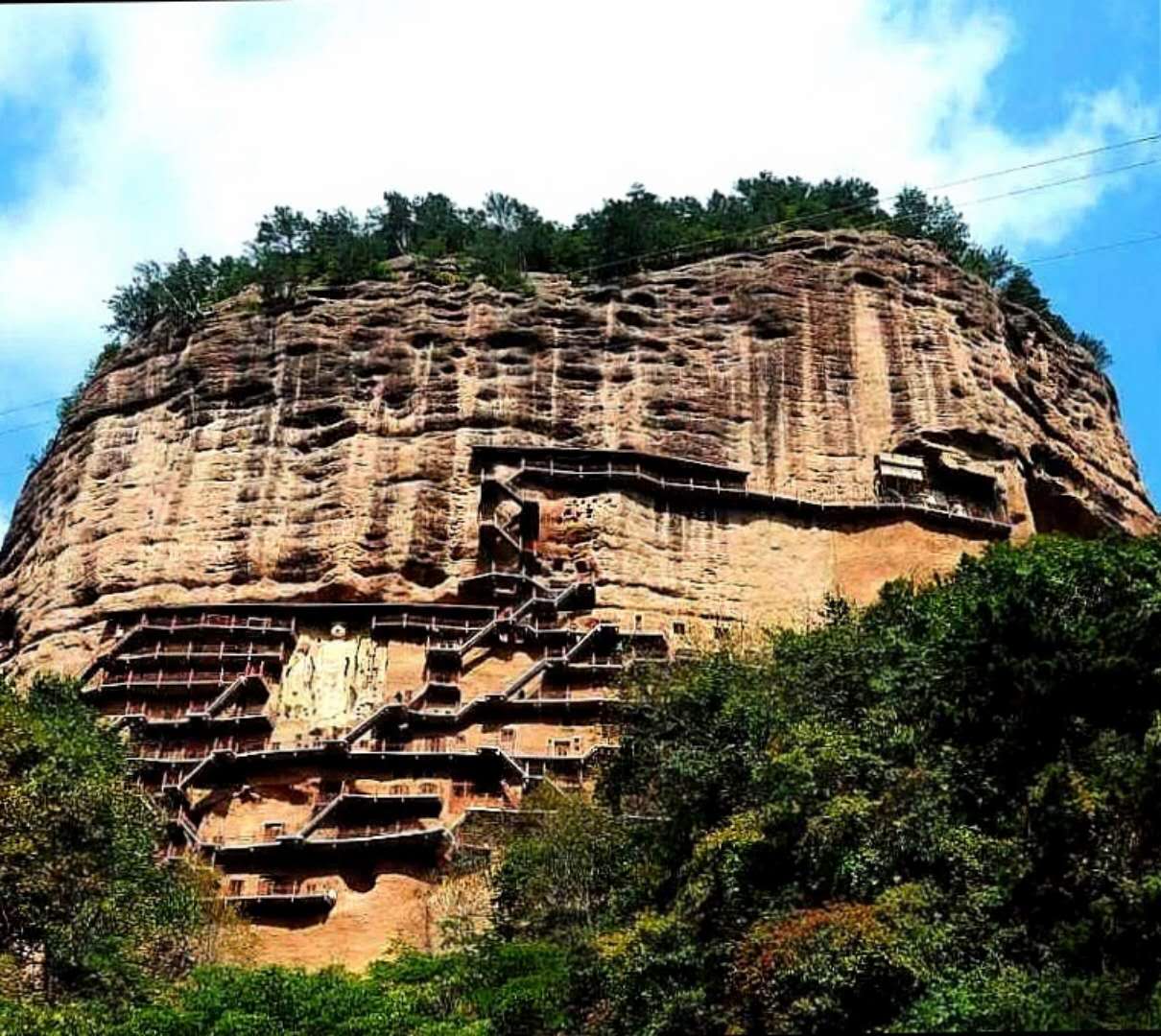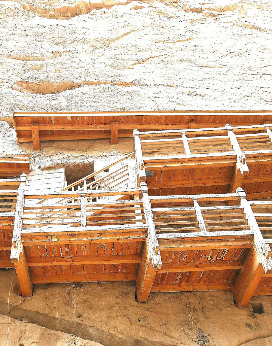 奥,这就是炳灵寺里最著名的169号窟,古称唐述窟,现称“天桥洞”。天桥洞高15米、深8米、宽20米,仅楼梯栈道就有七曾层之多。为已知我国开凿最早、保存最好的洞窟了。