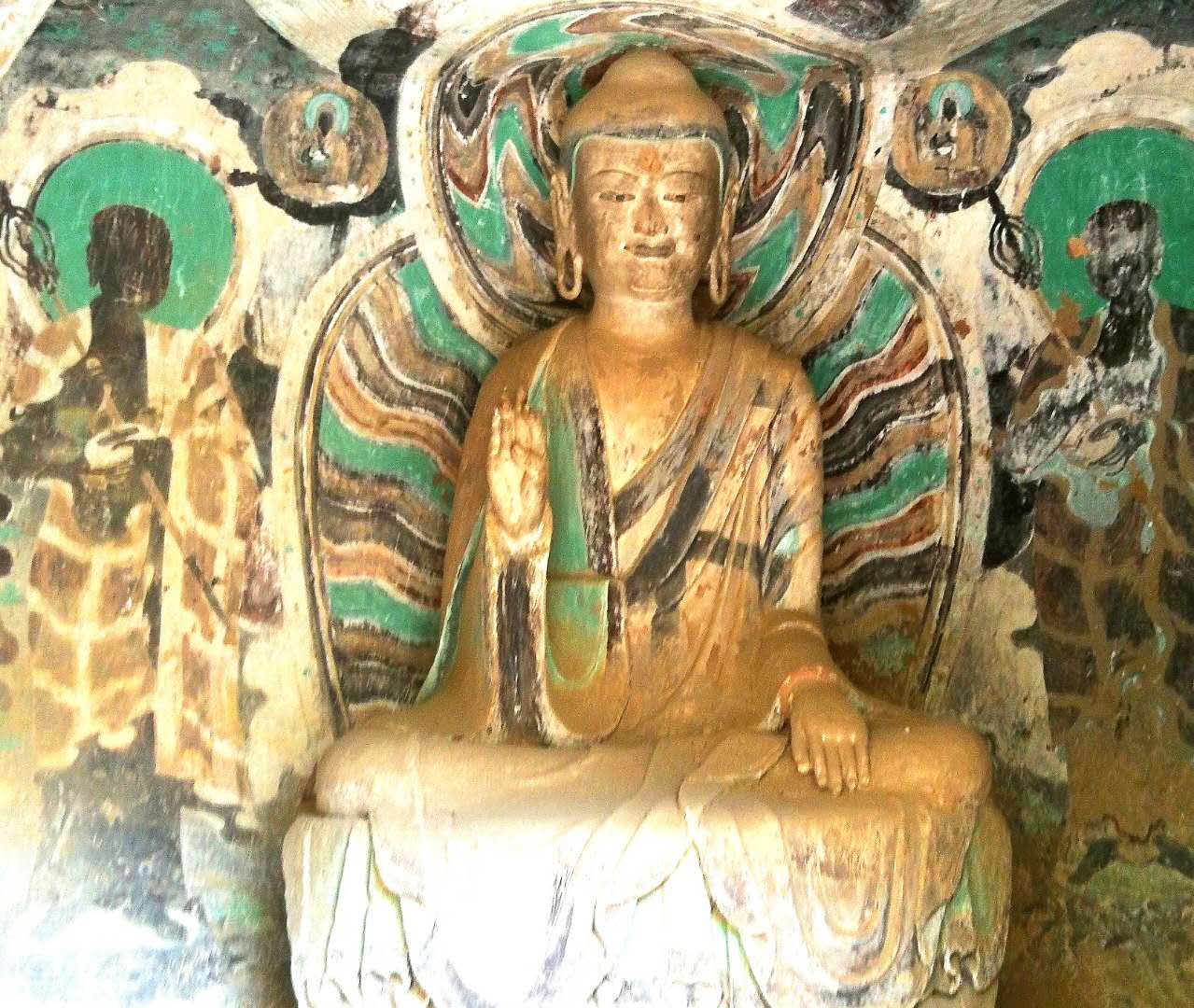 看这个石窟,虽洞穴不算大,但窟内塑像生动,浮雕、壁画色彩艳丽。观之,会产生无限的想象。