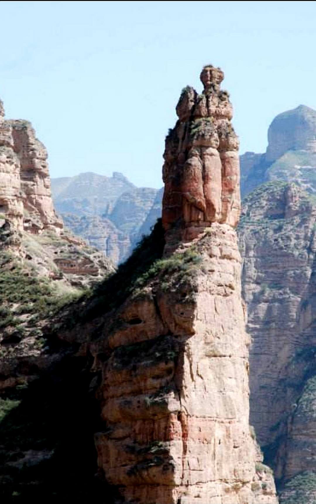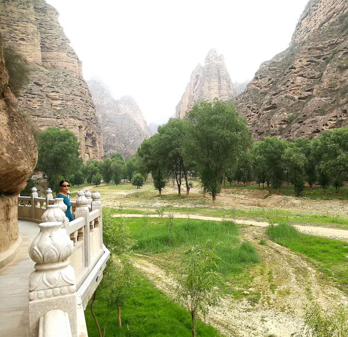我们从大寺沟另一面,又拐回到炳灵寺的入口处,悬崖旁边伫立着峻峭的姊妹峰,周围有鸳鸯洞、药水泉等胜境,山青水秀,峰险石奇,真是个好地方。 再见了,燁燁光华的炳灵寺石窟艺术!再见了,著名的文化遗产炳灵寺!
