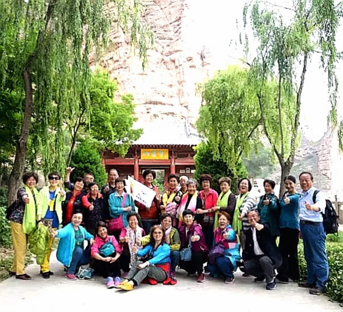 炳灵山美不美?美!我们开心不开心?开心!——耶,好嘛,一群老头老太太们聊发少年狂了。