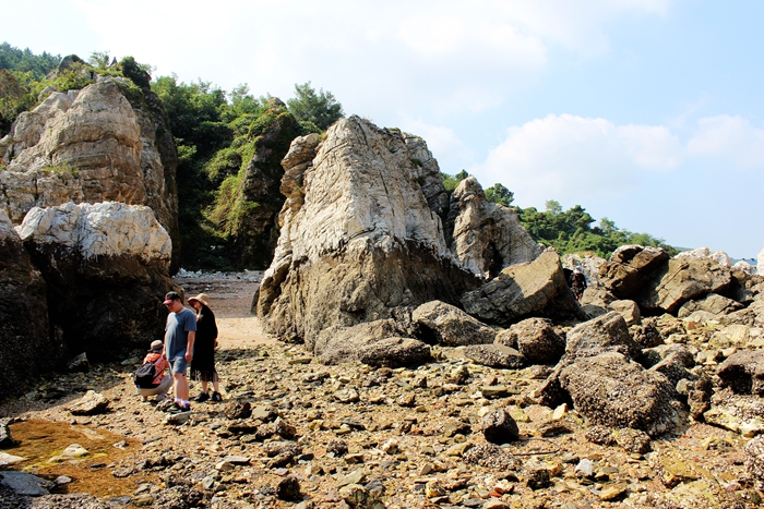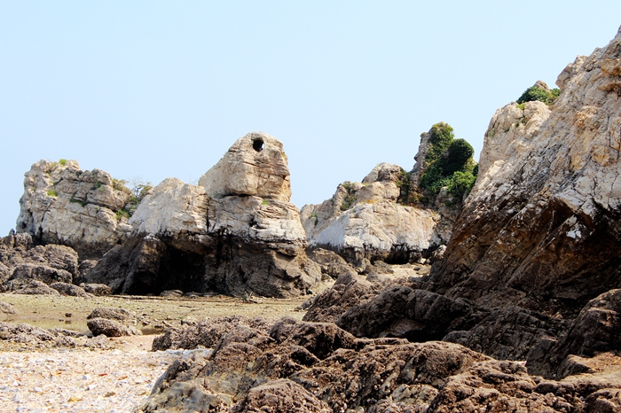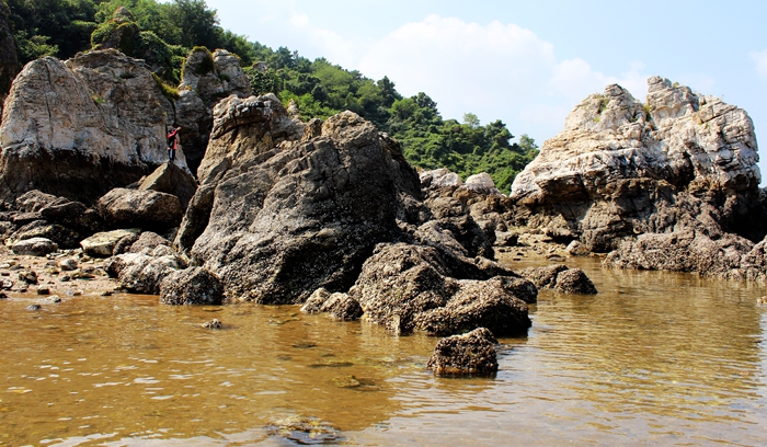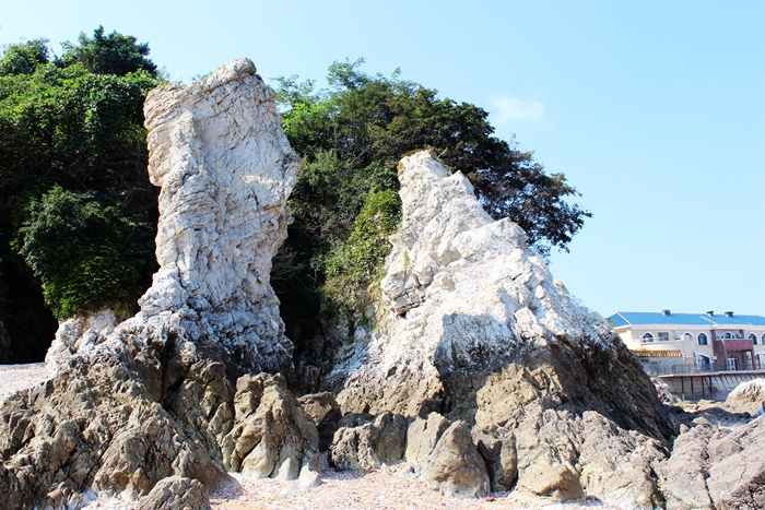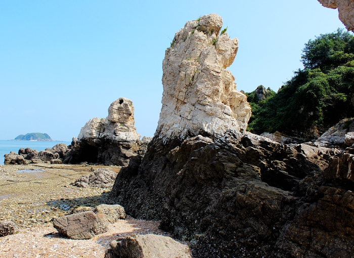 俗话说:“木秀于林风必摧之,土堆于岸水必冲之”。这里是“石积于岸浪必修之”,就是这样,石岸冲成了石林。其造型迥异,怪石嶙峋,高低有致,堆于海岸。有一座小石林,极为像海边塑成的石鸟,有头、有眼、有鼻子、有嘴,形象逼真。
