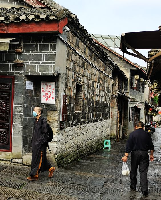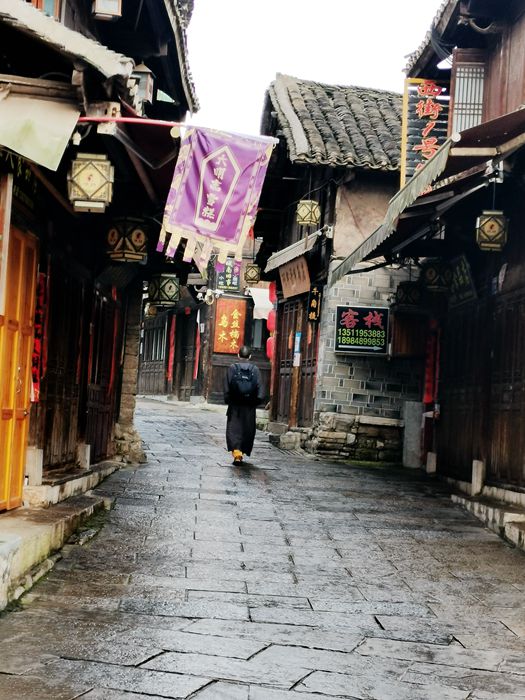 8年抗战时期,国立浙江大学曾经有一段西迁的历史。当年,浙江大学就是在青岩古镇的万寿宫办学;在万寿宫的对面,是一座当地人企望接财神的慈云寺;在古镇的东门附近,有一座始于清代的寿佛寺,后来成为《两湖会馆》,也是湖南、湖北两省商人的会馆,现在成为风铃渡客栈;古镇中央的地方,有一条老街叫“背街”。背街以石头砌成的房舍、围墙、石街,既有乡村的味道,又有城市街区的某种特点。抗战时期,李克农同志的家属和孟庆树同志的家属等就居住在背街的院落之内;这里,也是电影《老枪》的拍摄外景地。