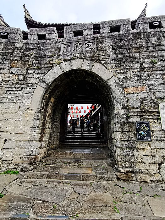 后来,古镇守卫日趋成熟,周围建筑了古城墙。清朝的顺治17年(1660年),官方修建了定远门和守卫城池。城墙上有垛口、炮台,整座城池设有东门、南门、西门和北门四座城门,是古代贵阳南面的军事重镇,素有“筑南门户之称”。