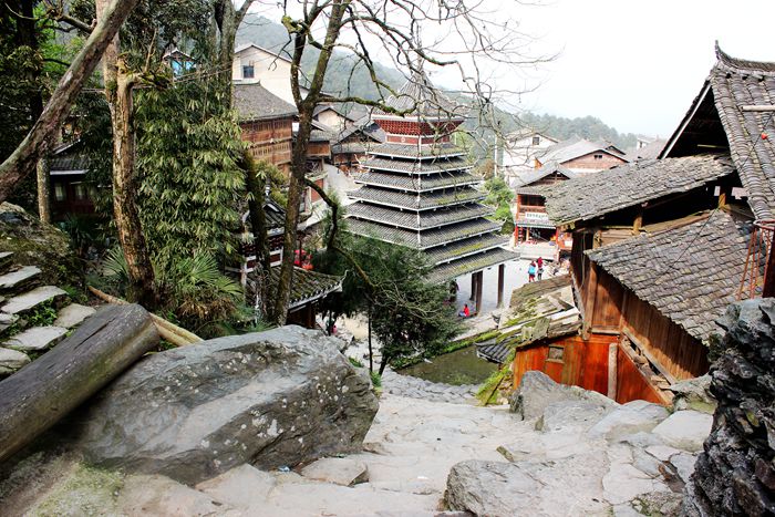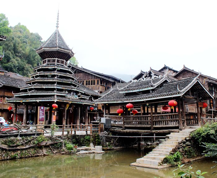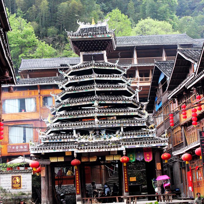 这里名气最大的应该是自17世纪以来,修建的五座鼓楼,五座鼓楼代表了五个团(族)。这座中国最大的侗乡侗寨,以肇兴侗寨为核心,有7个自然村(寨),3094户人家,11796口人。仅肇兴侗寨就有1200户人家和3997口人,号称“千户侗寨”。