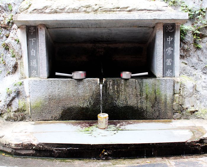 每个团楼的旁边,都有一口山泉水井,本团族的人可以来此打水,水井旁边写着“饮水思源”,“池中长蓄水,亭下自通泉”。大概是希望本团族生命不息,源远流长。